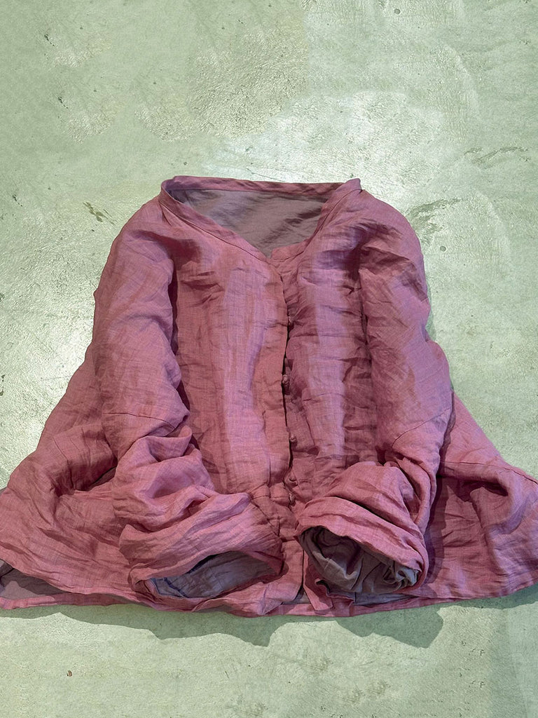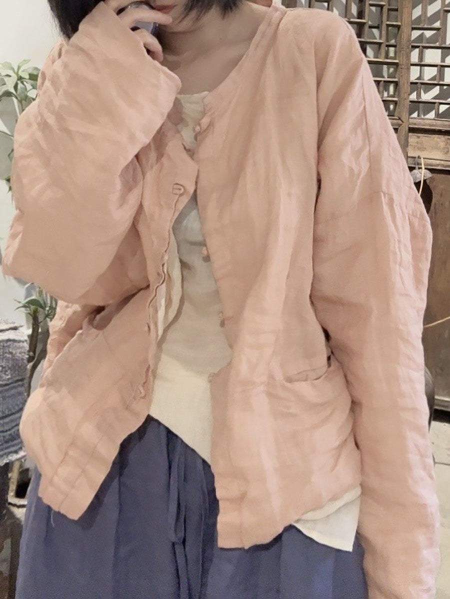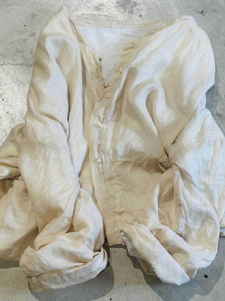 Camisa de lino lisa de estilo vintage para mujer, otoño