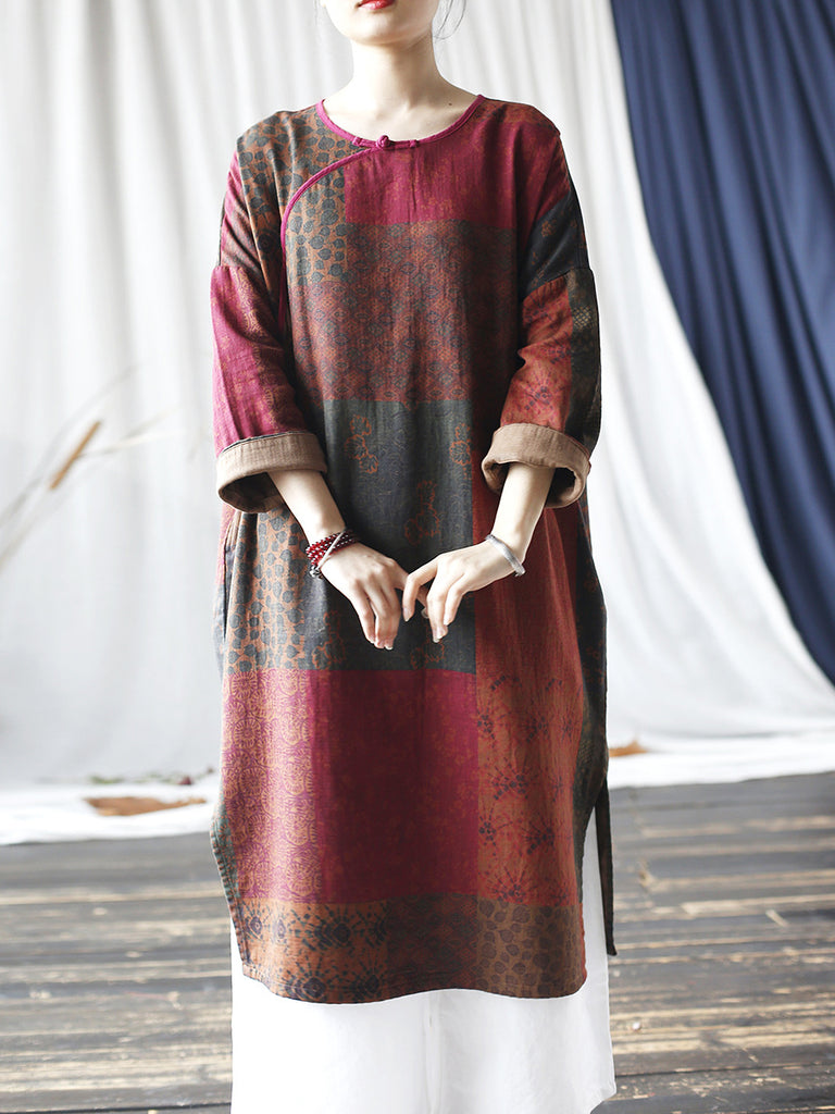 Vestido de bata de algodón empalmado de primavera vintage para mujer