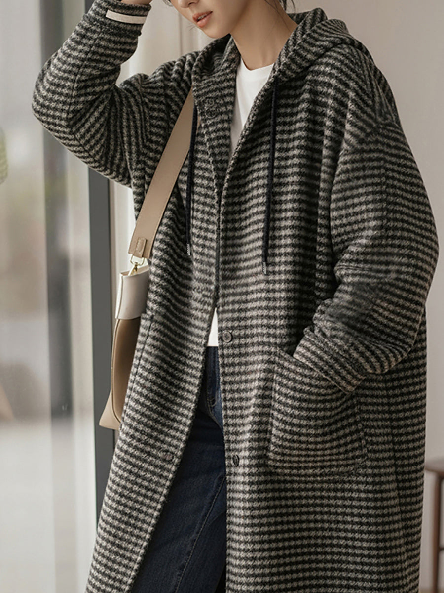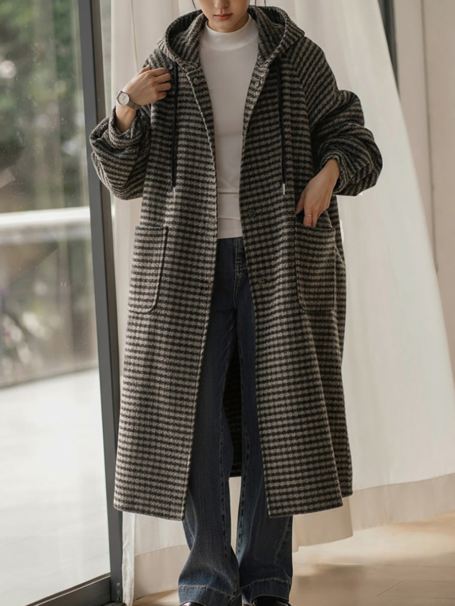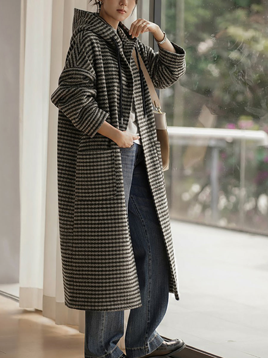 Abrigo de invierno vintage a rayas con capucha para mujer