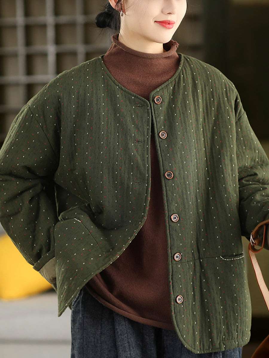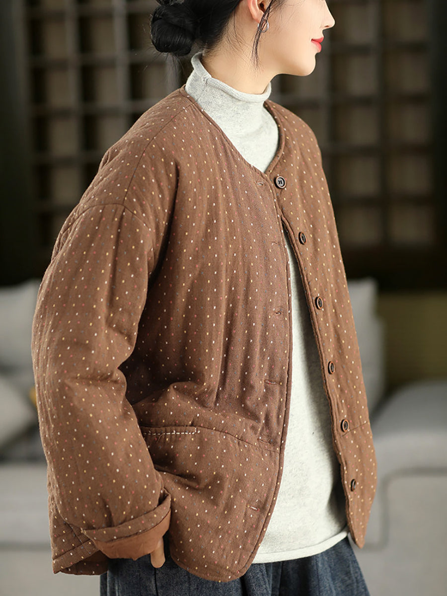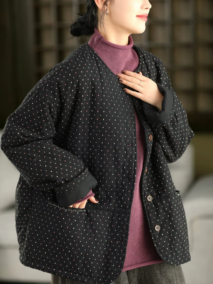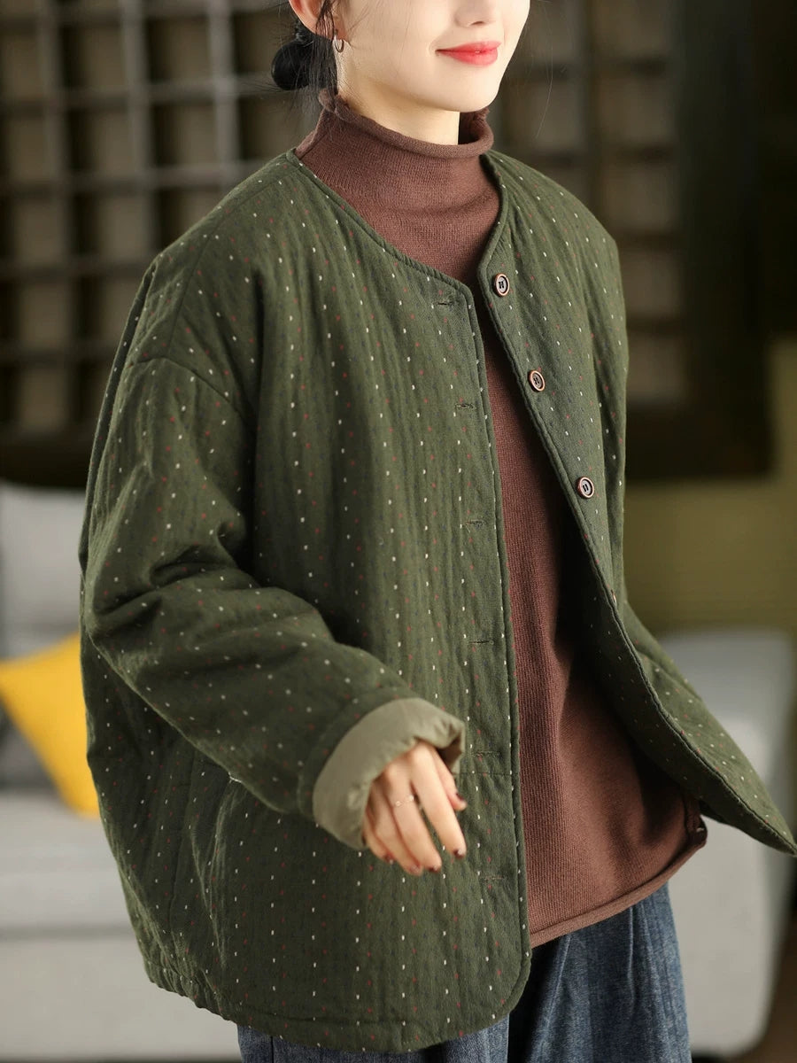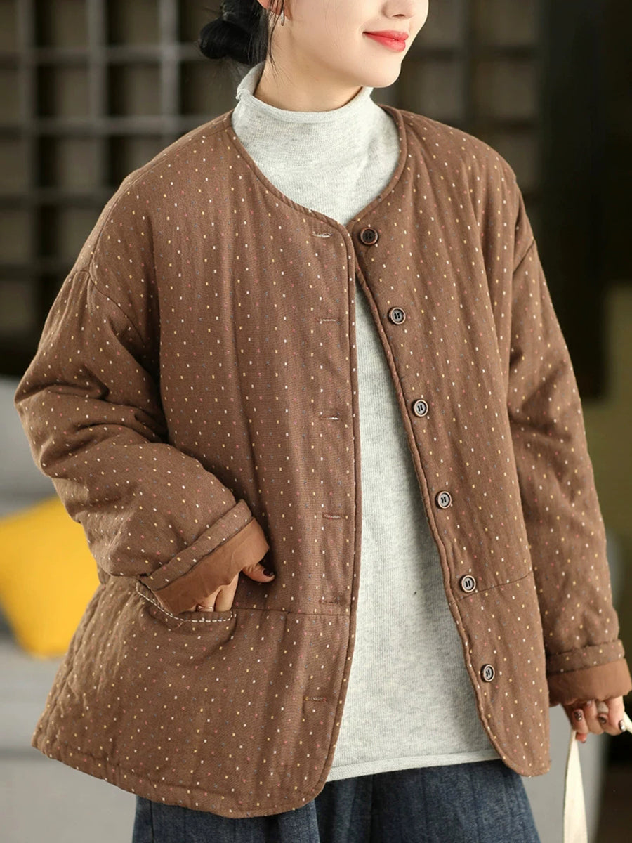 Abrigo acolchado de invierno para mujer, 100 % algodón, con cuello redondo y estampado de lunares artísticos