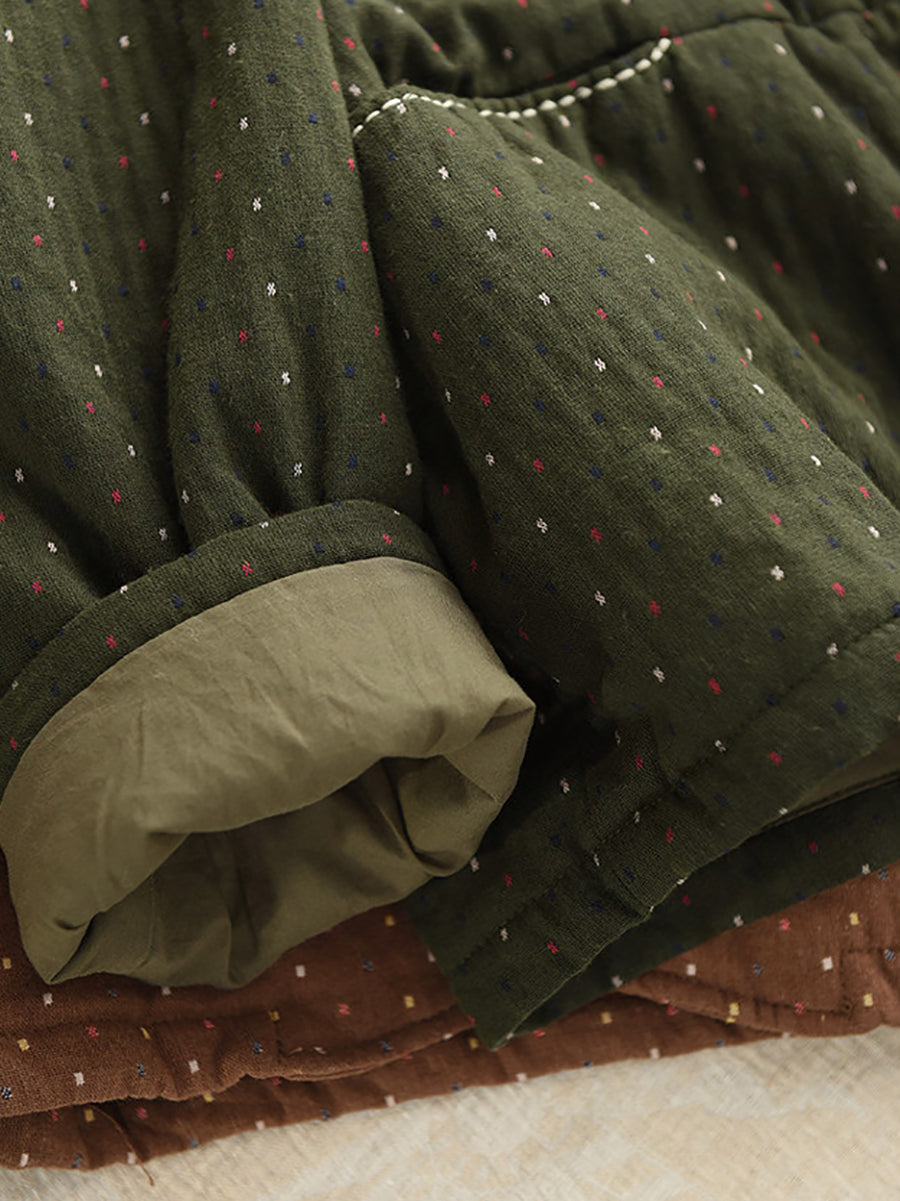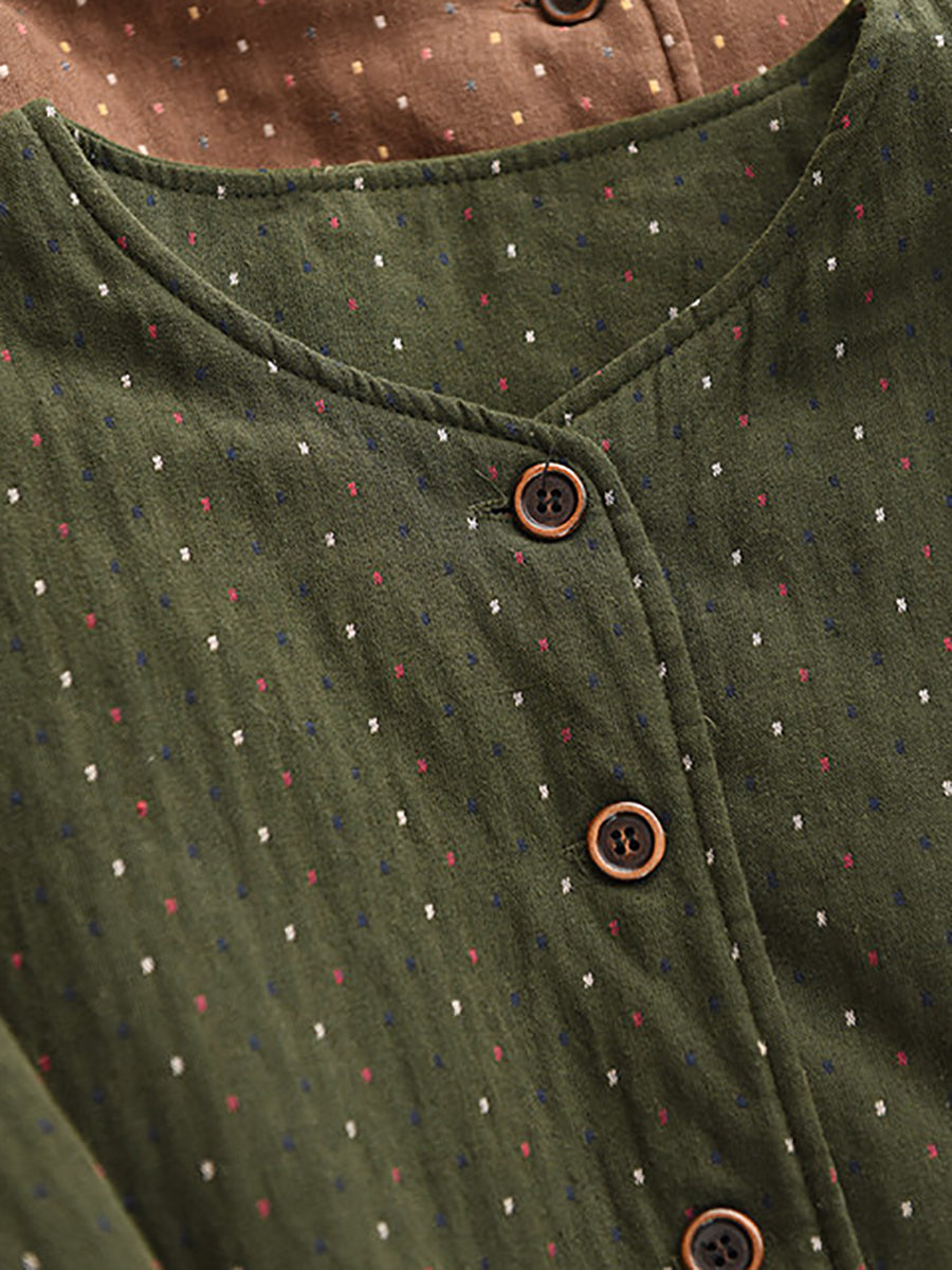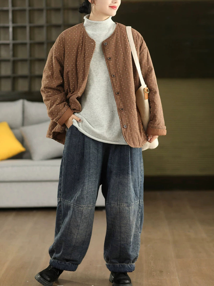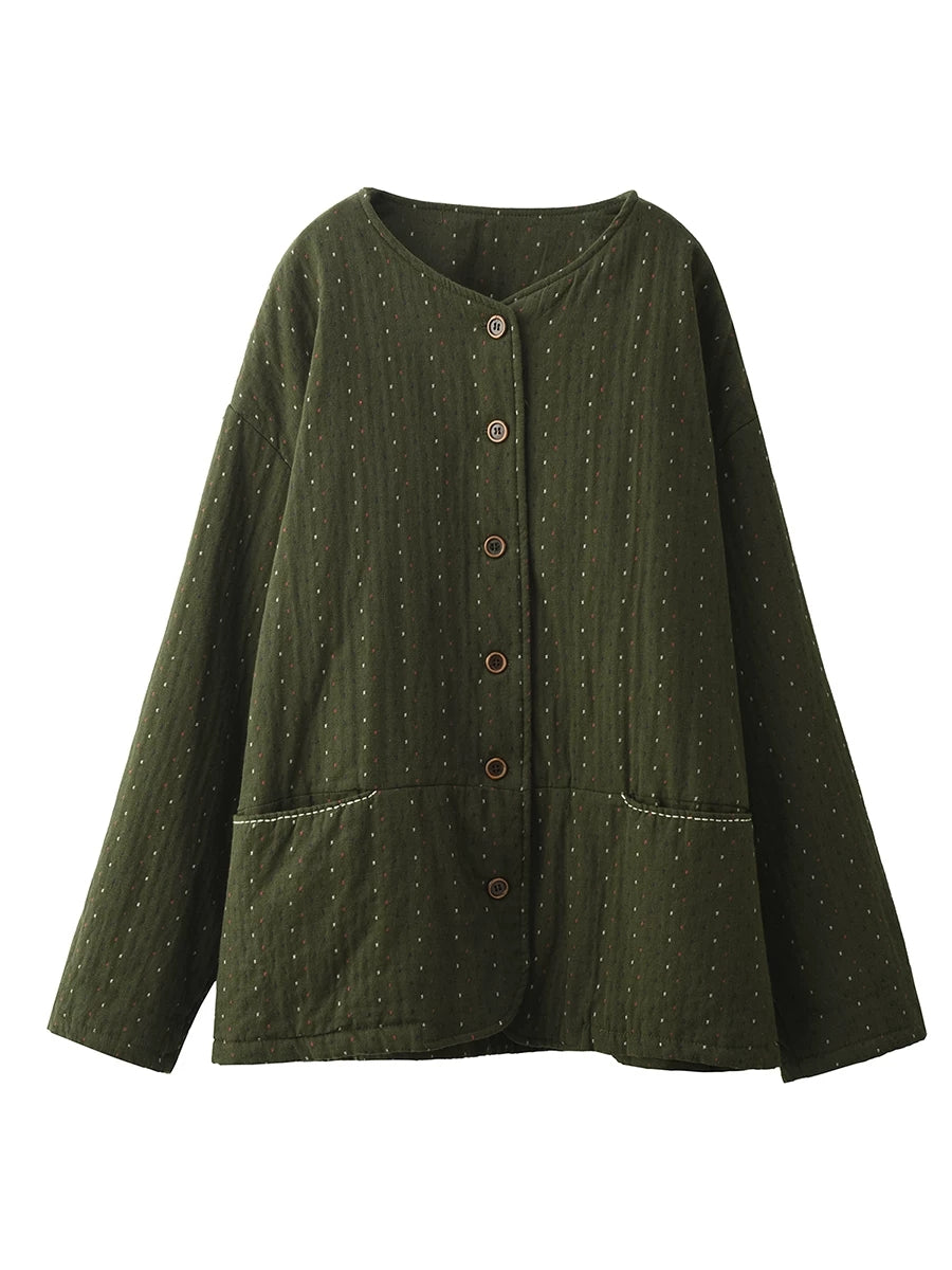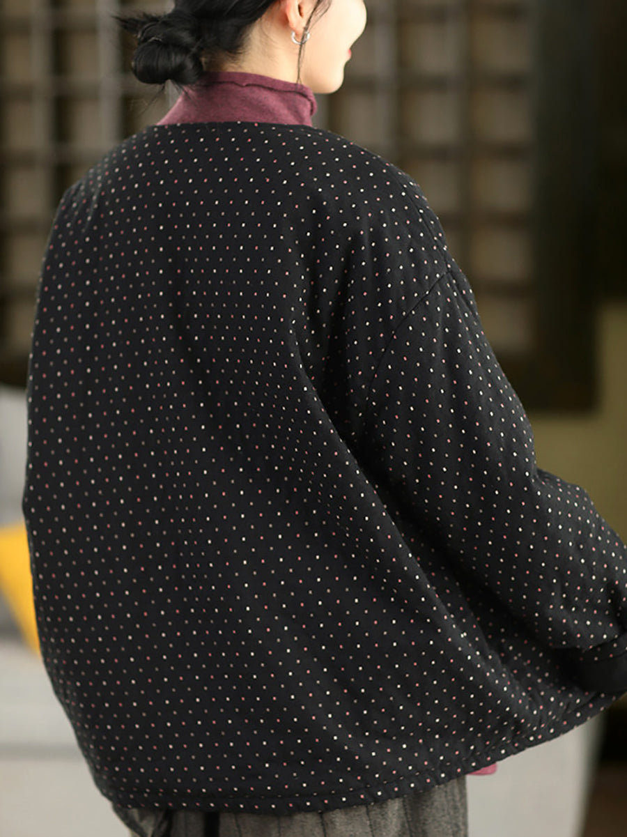Abrigo acolchado de invierno para mujer, 100 % algodón, con cuello redondo y estampado de lunares artísticos