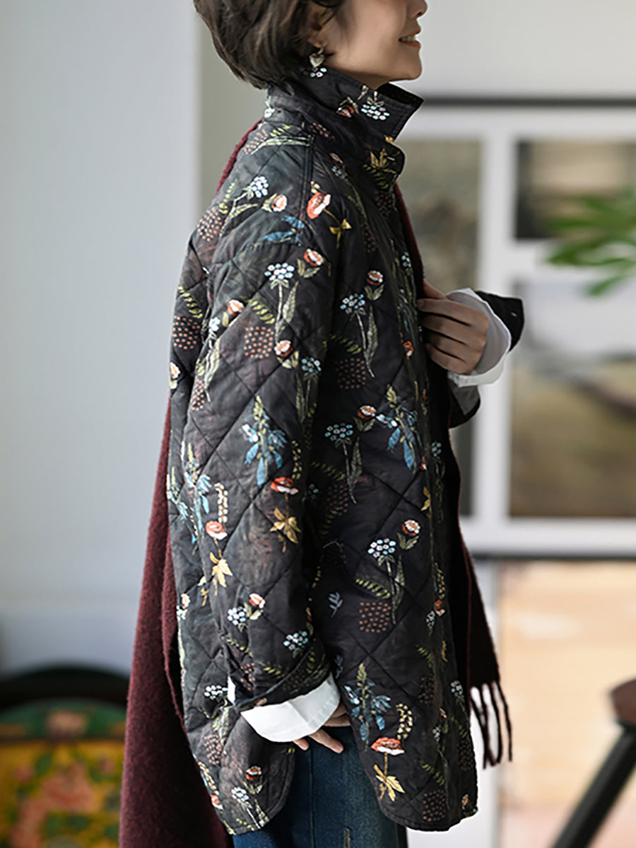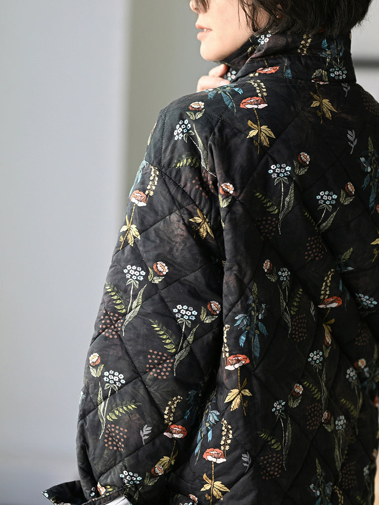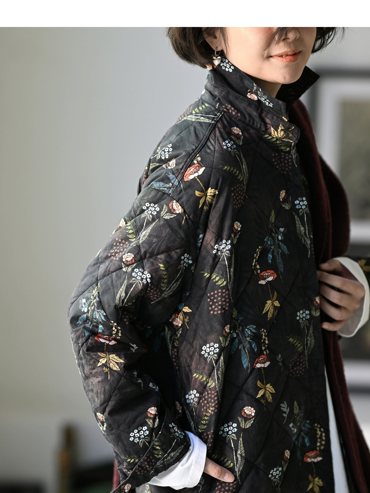 Abrigo acolchado con flores artísticas de invierno para mujer