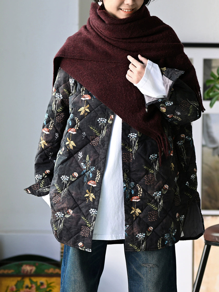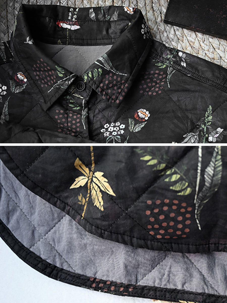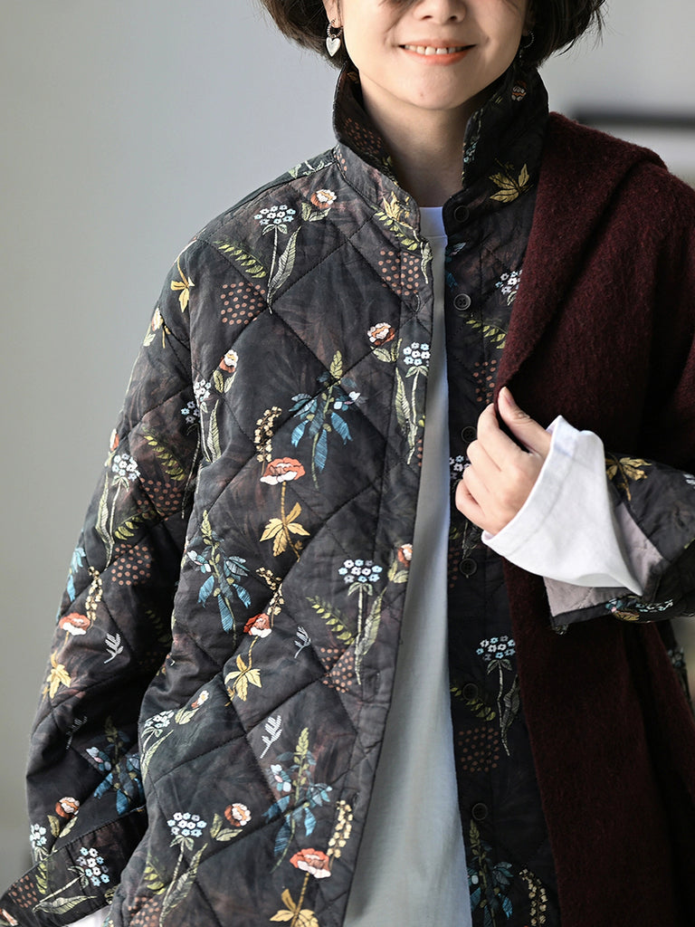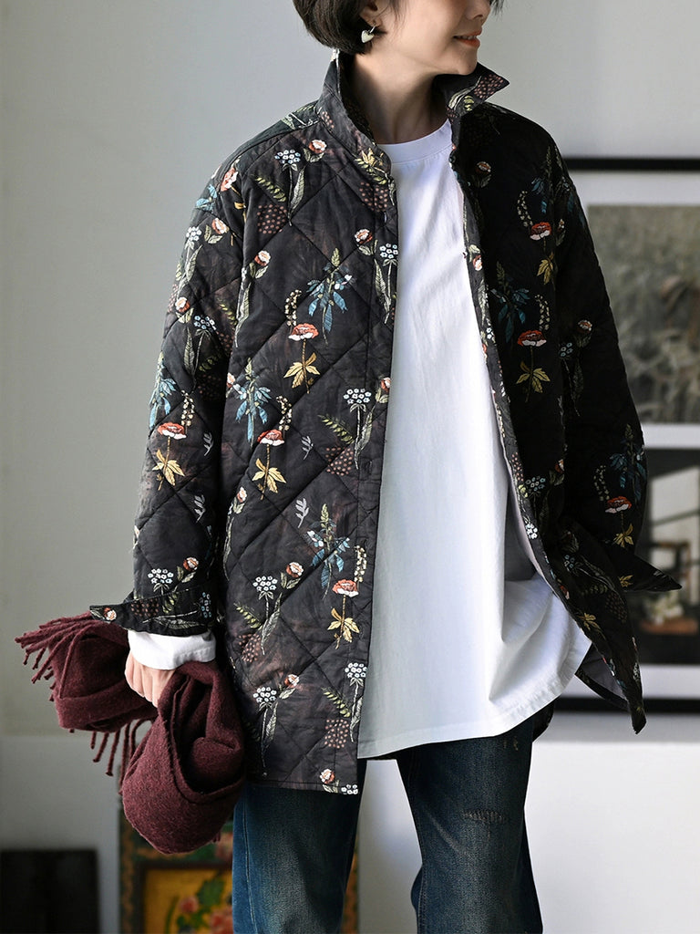 Abrigo acolchado con flores artísticas de invierno para mujer