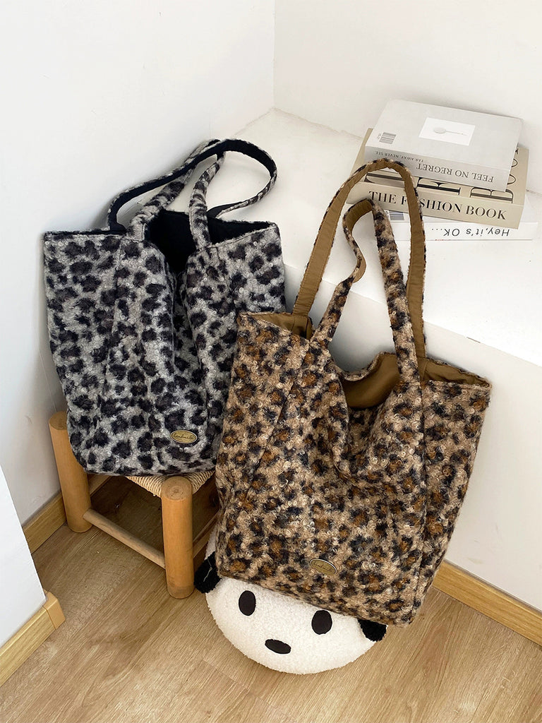 Bolso de hombro de polar con estampado de leopardo artístico de invierno para mujer