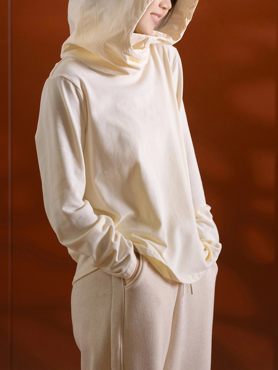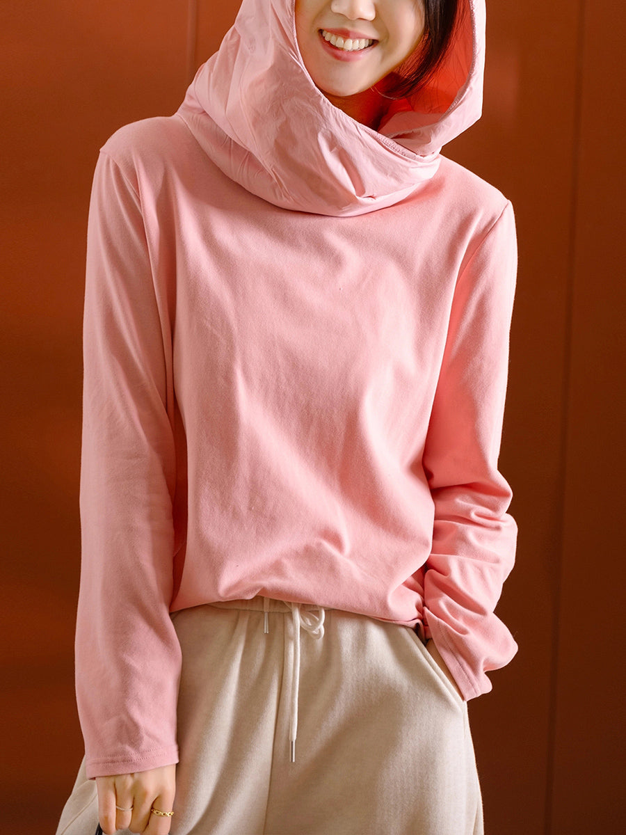 Sudadera con capucha de algodón de color puro y estilo artístico de invierno para mujer
