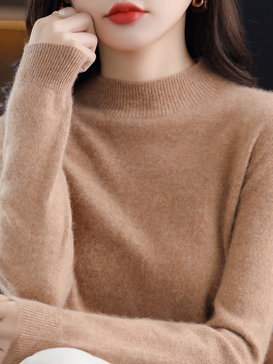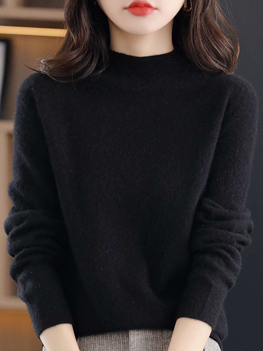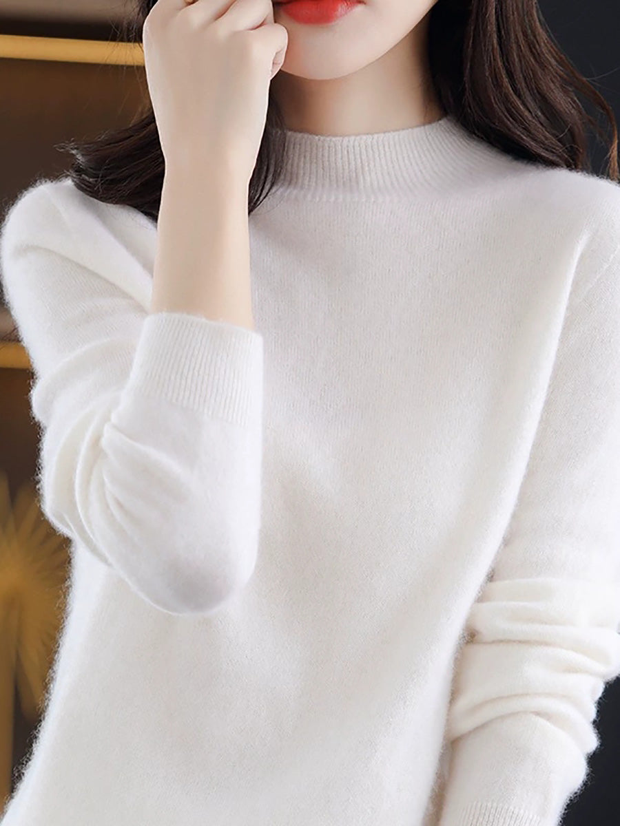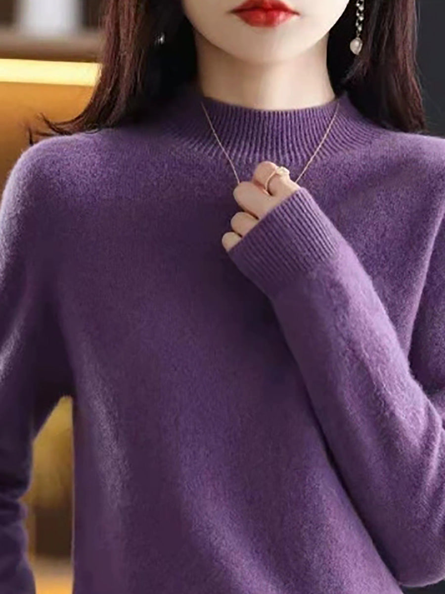 Suéter de cuello alto medio de color puro y artístico de invierno para mujer