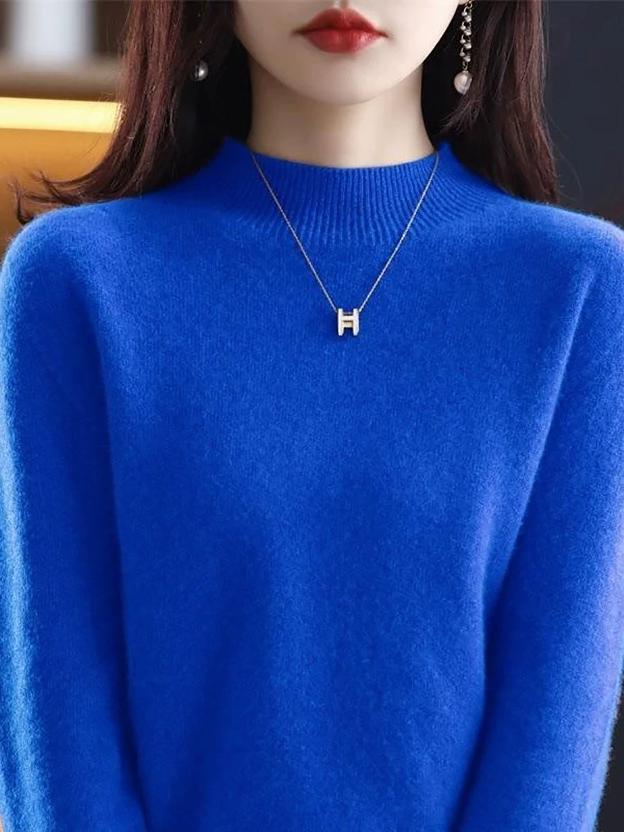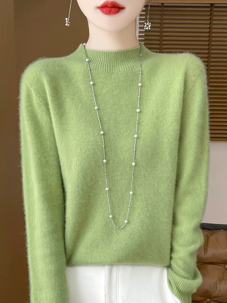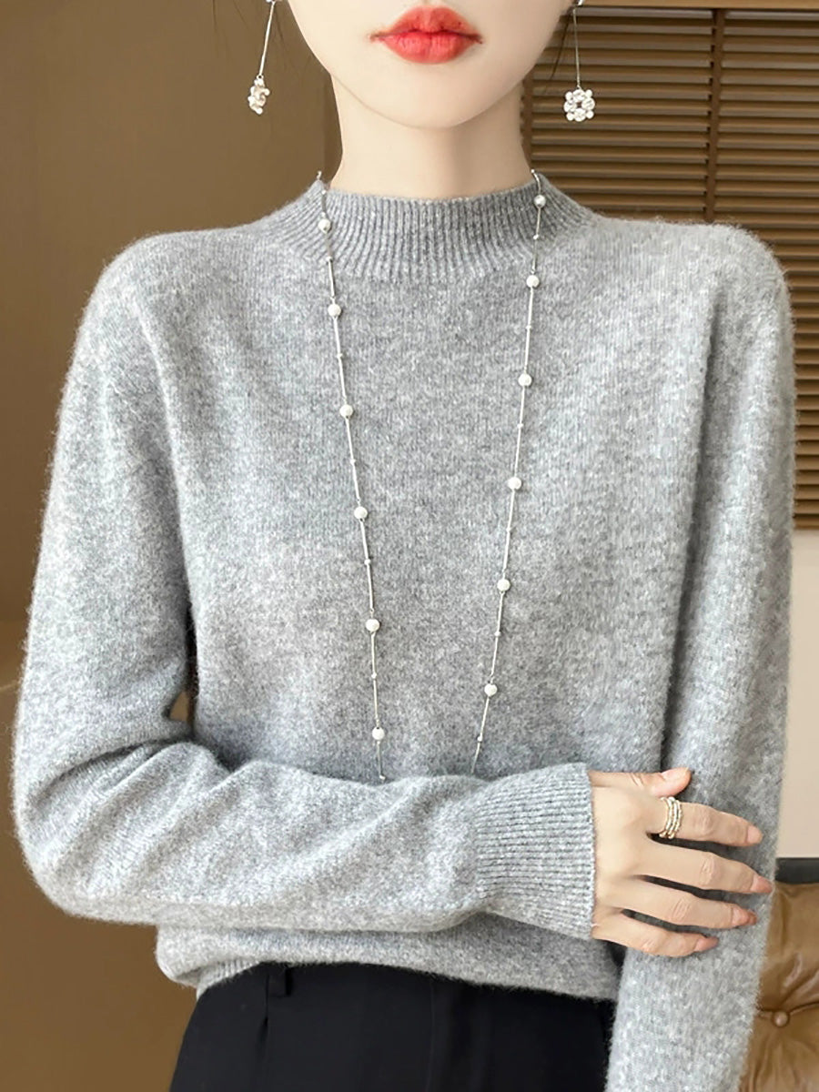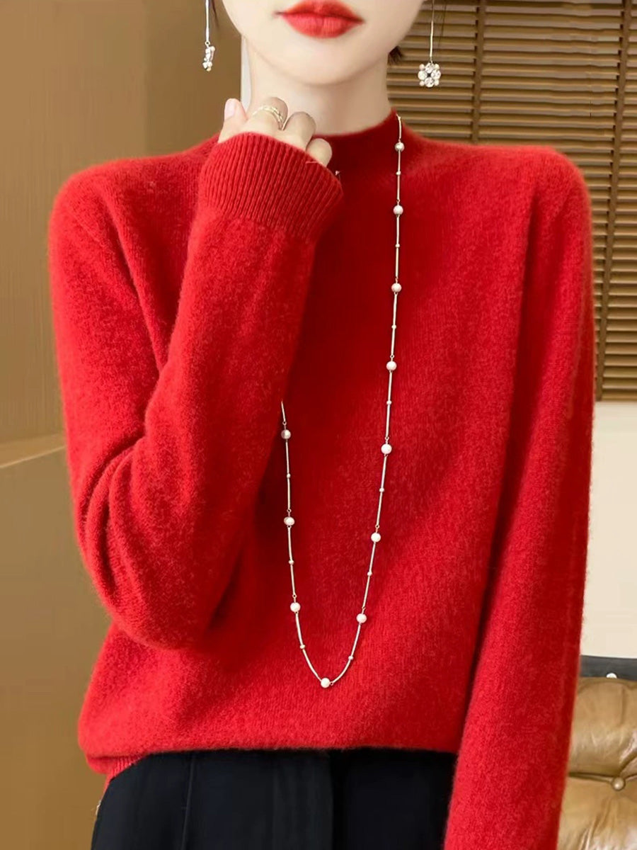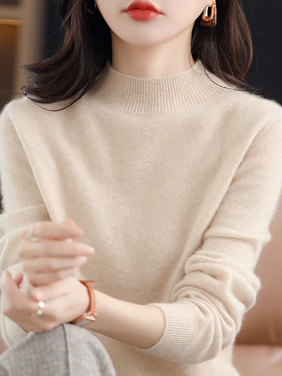 Suéter de cuello alto medio de color puro y artístico de invierno para mujer