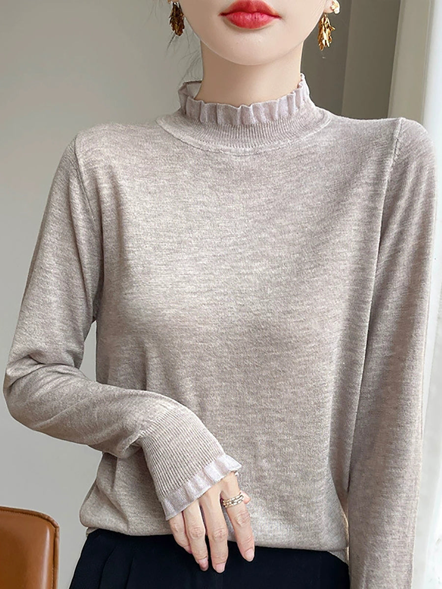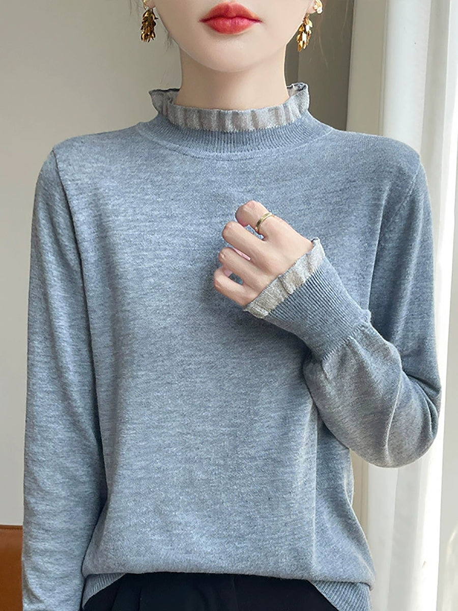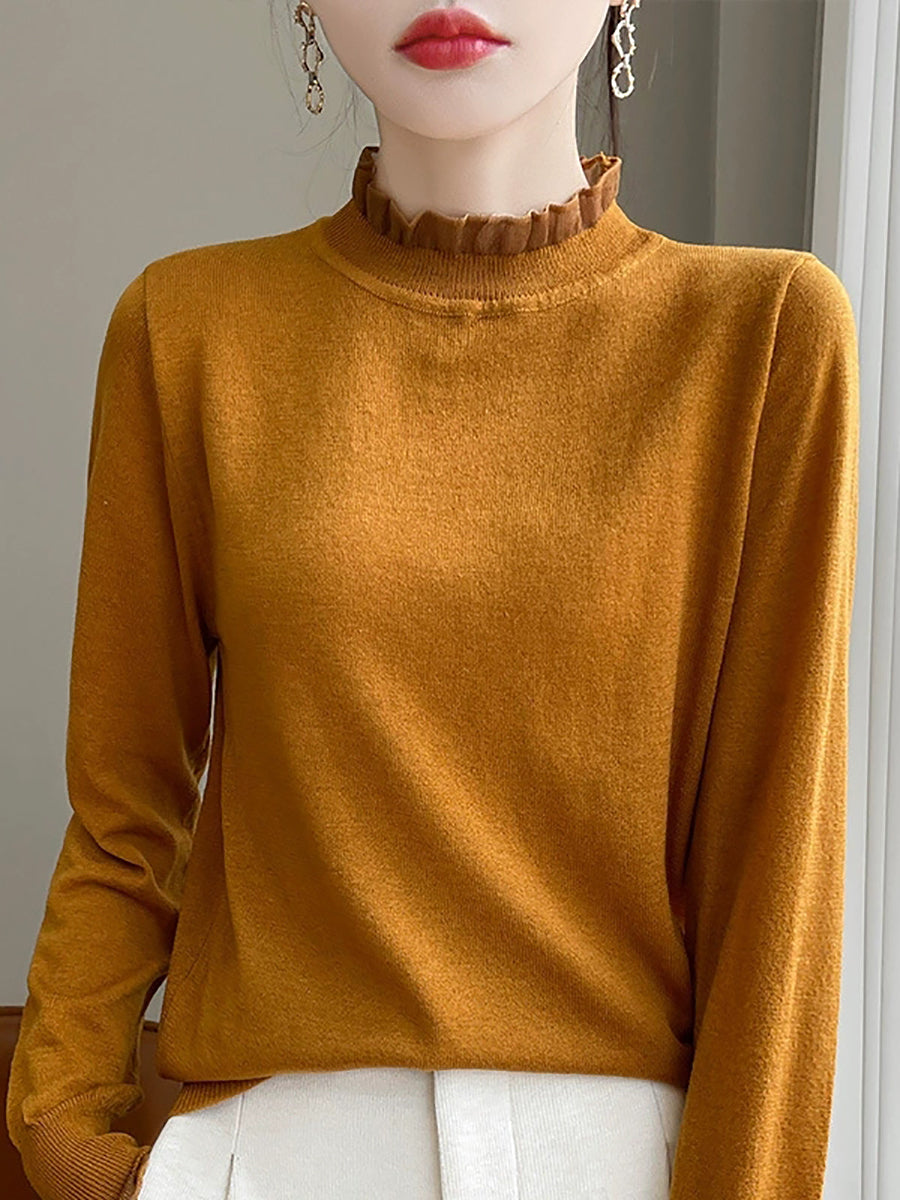 Suéter de invierno con cuello de encaje de color puro y artístico para mujer