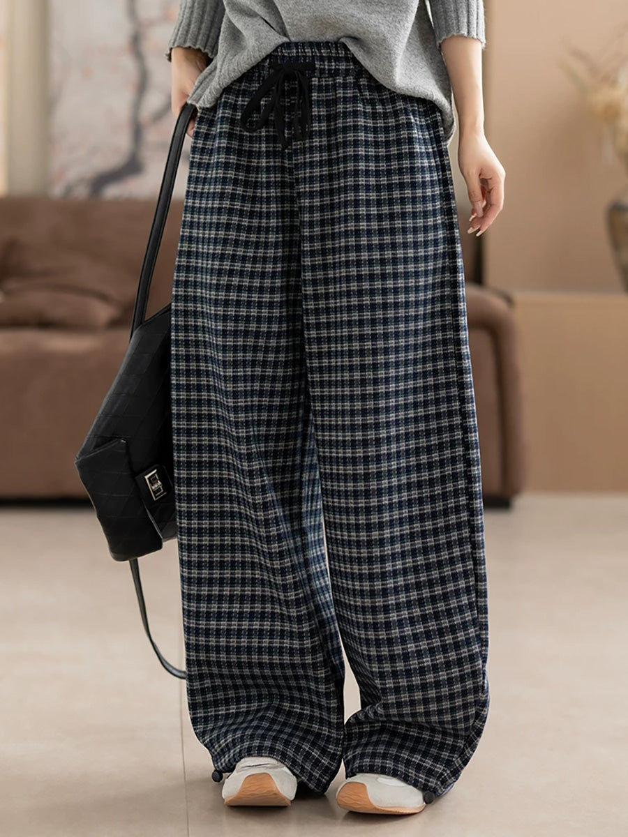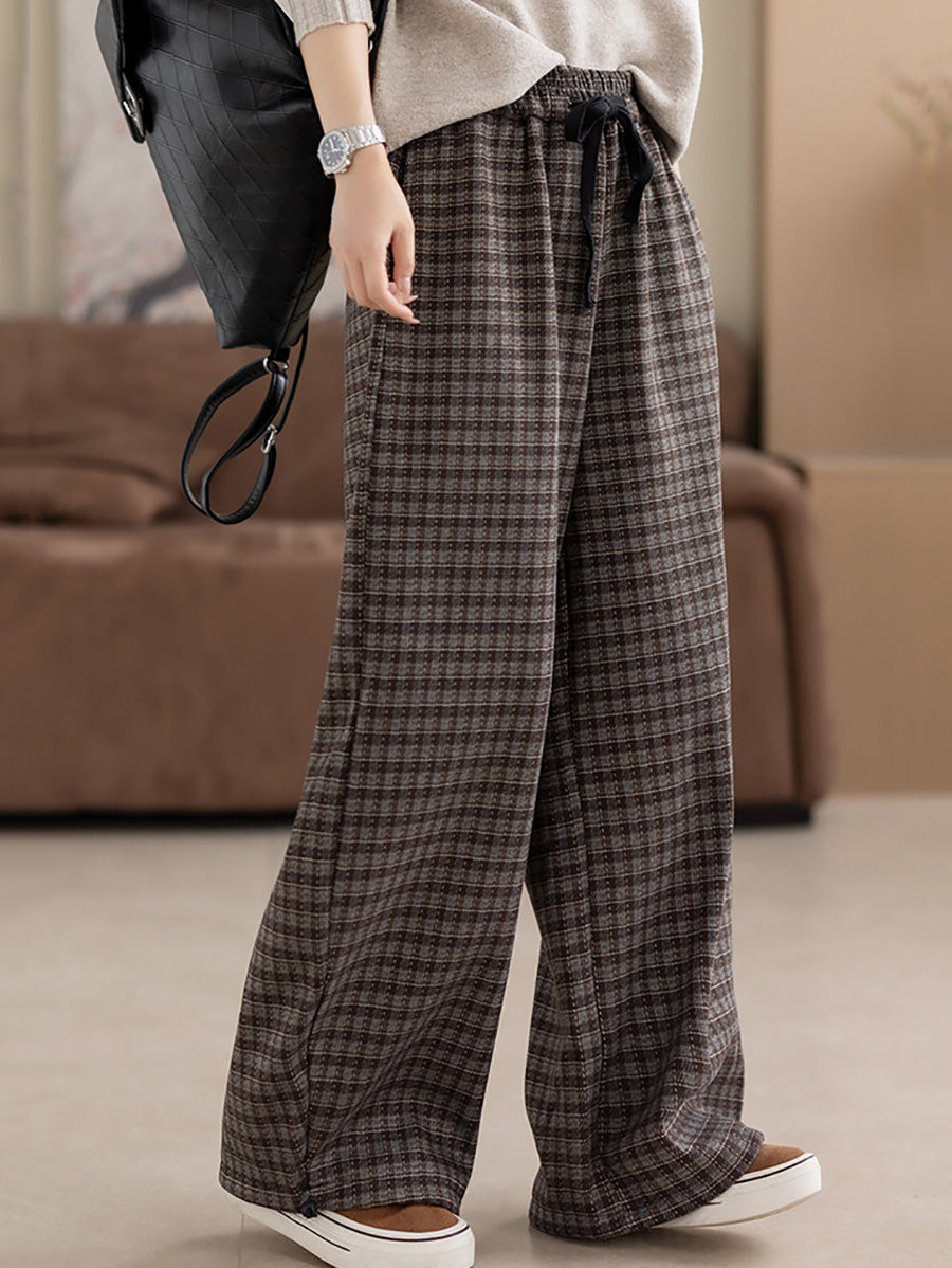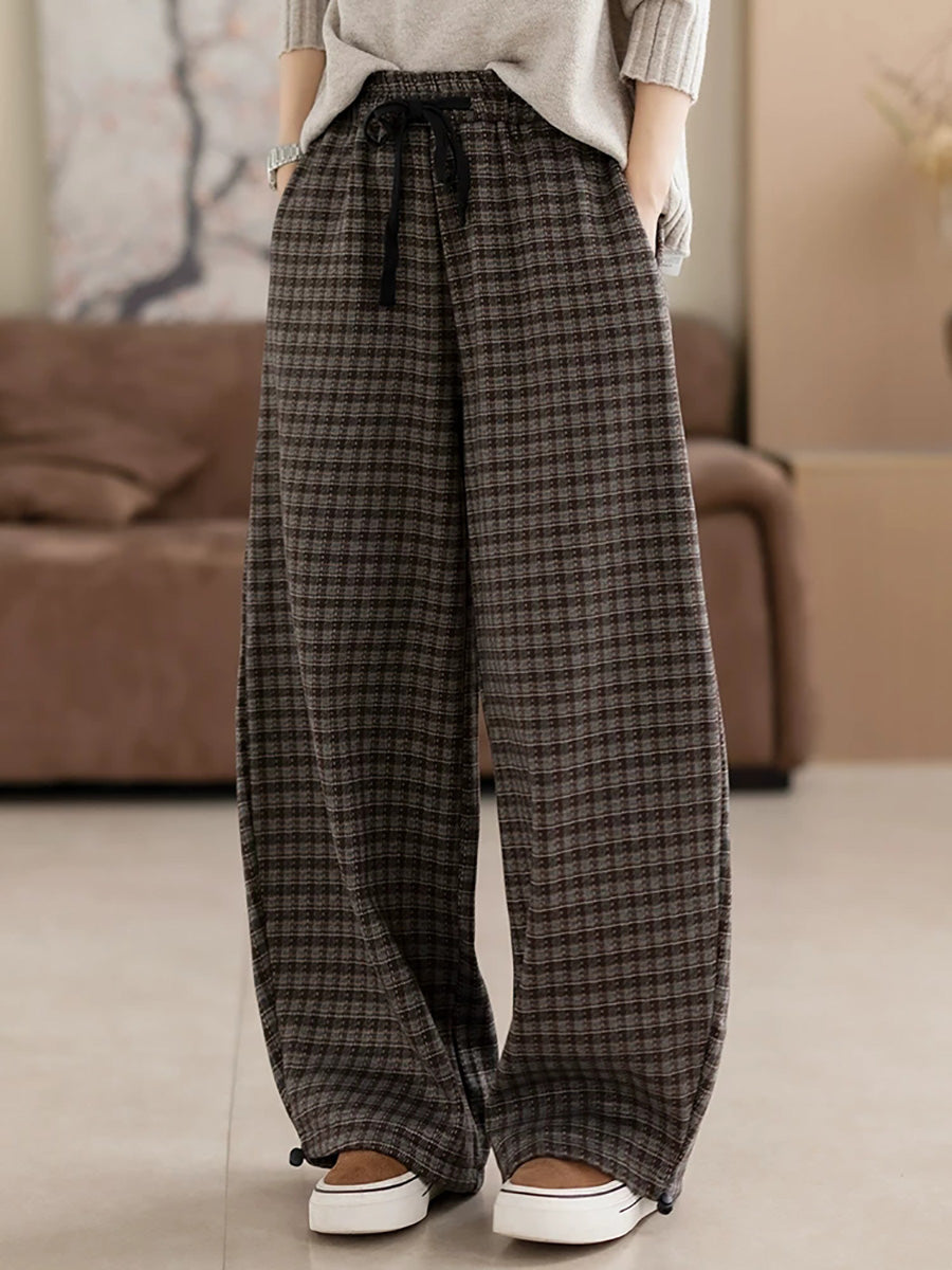 Pantalones anchos con forro polar a cuadros informales de invierno para mujer