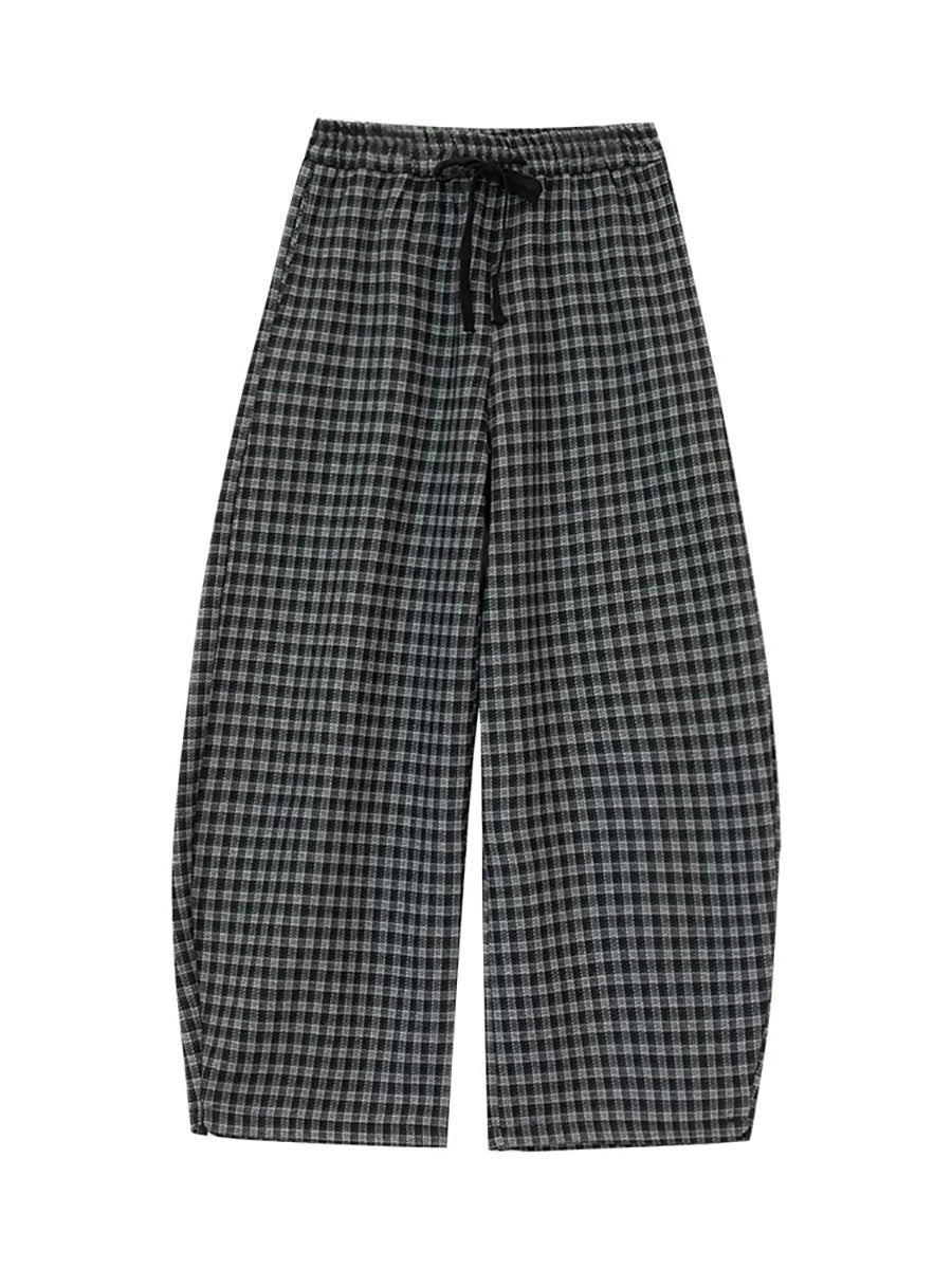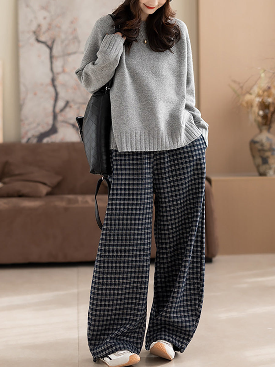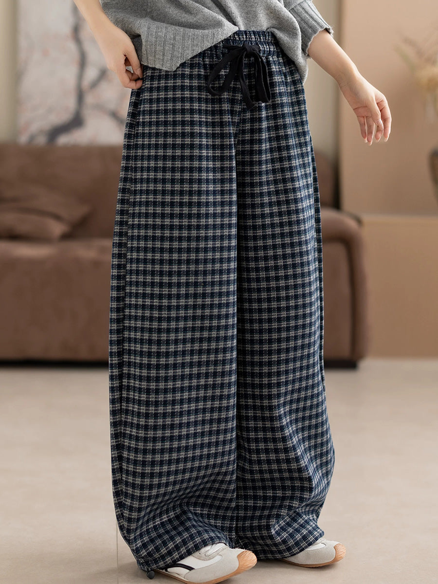 Pantalones anchos con forro polar a cuadros informales de invierno para mujer