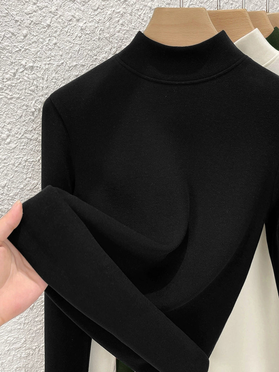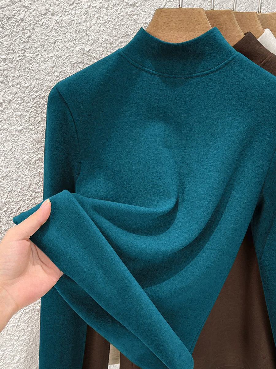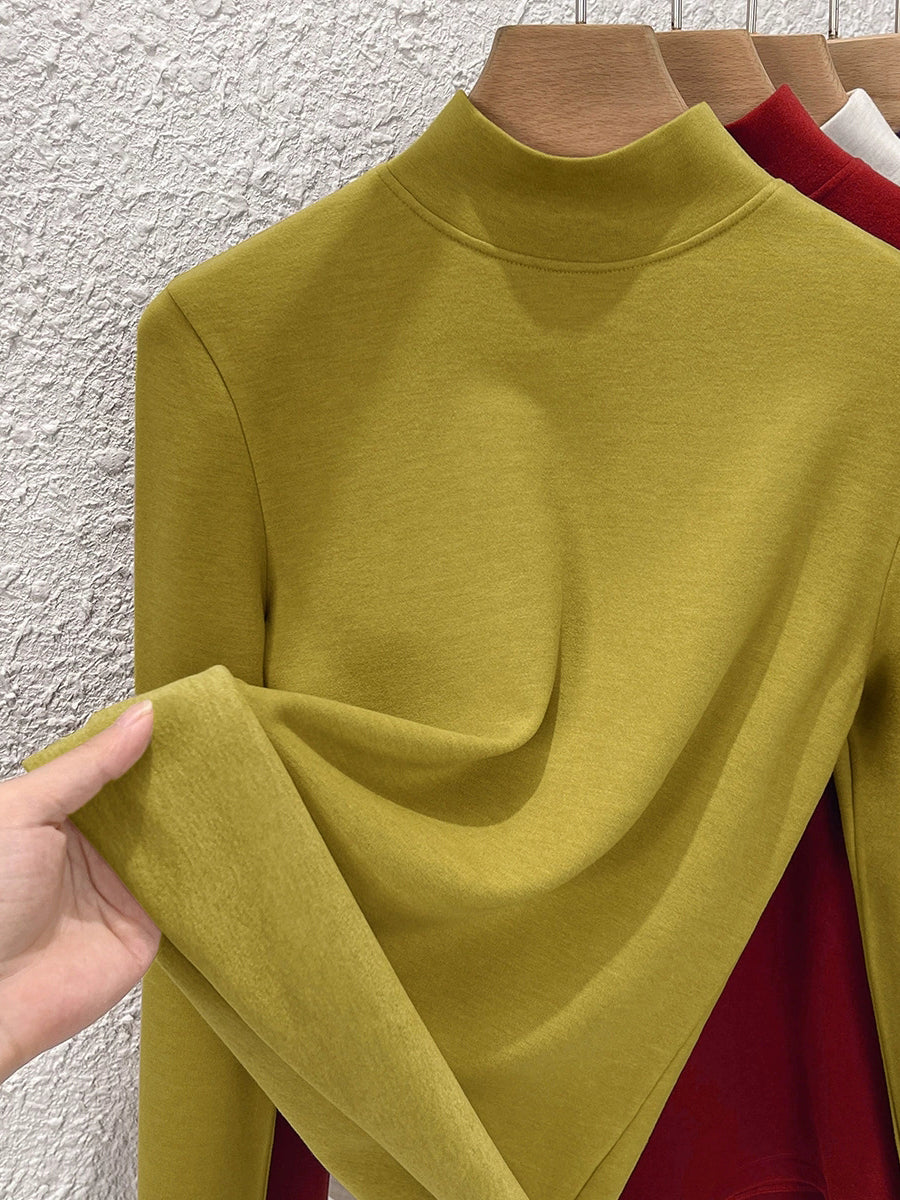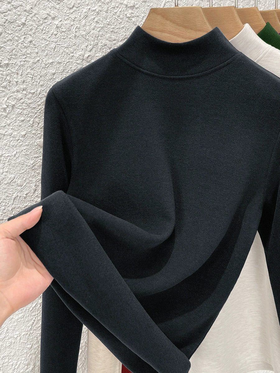 Blusa de cuello alto medio de color puro de invierno para mujer