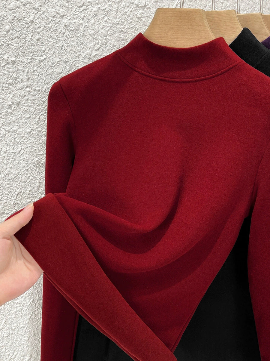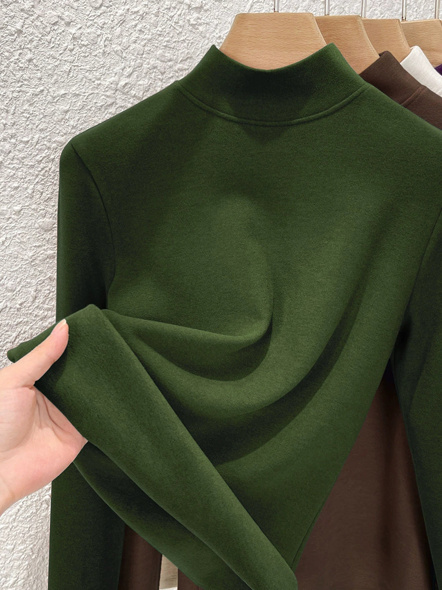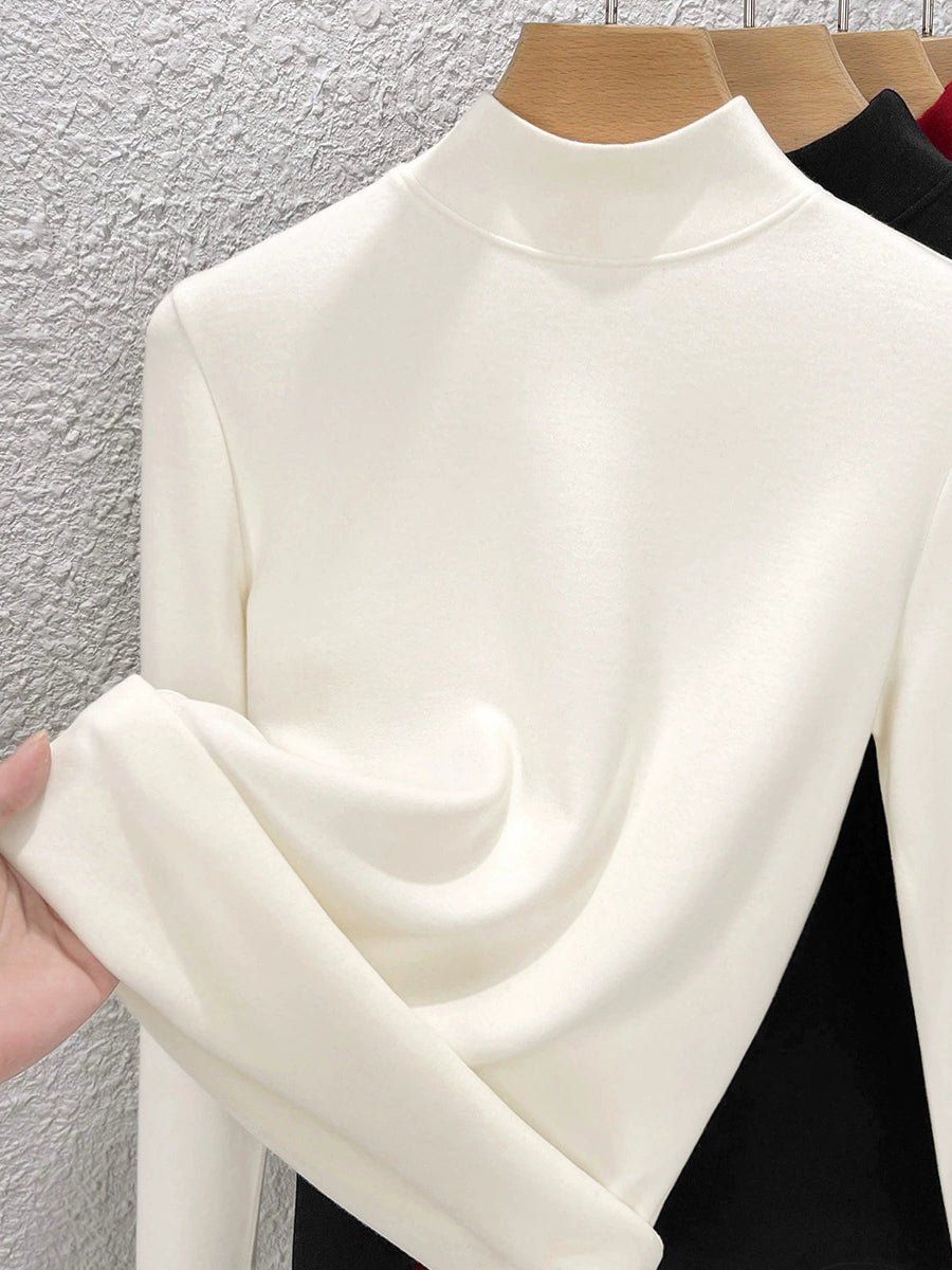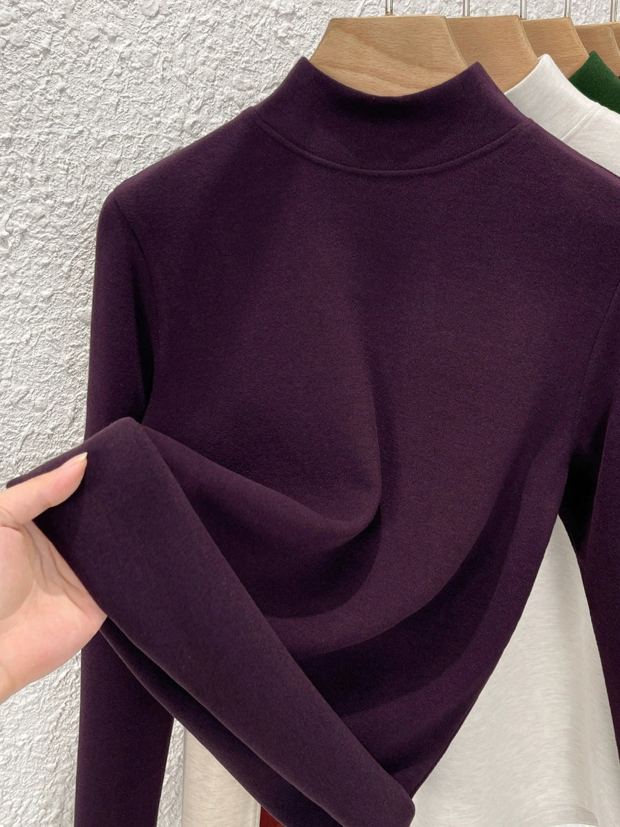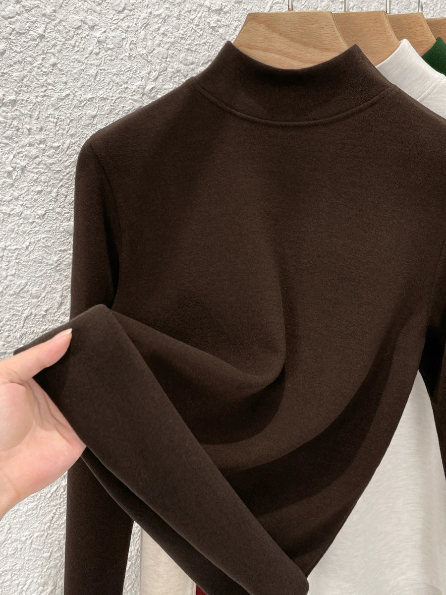 Blusa de cuello alto medio de color puro de invierno para mujer