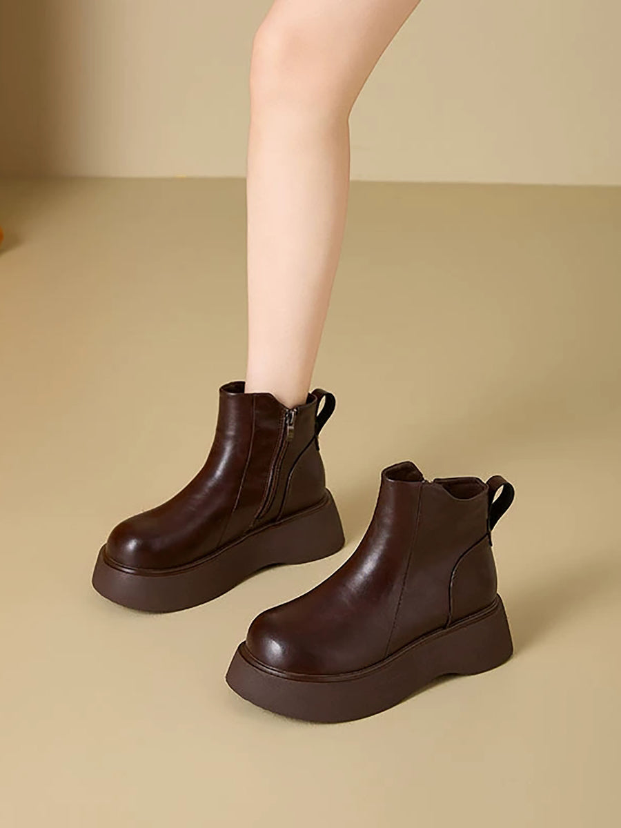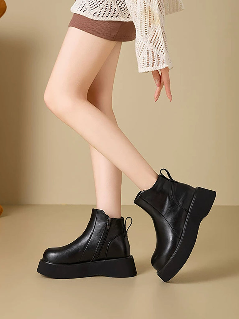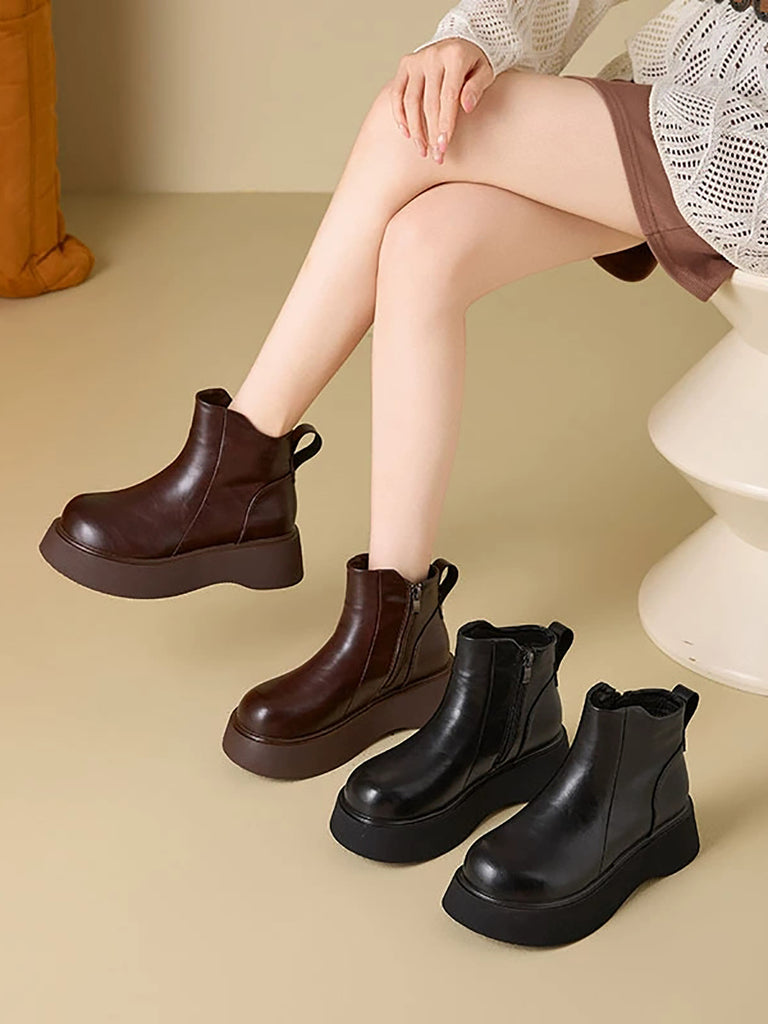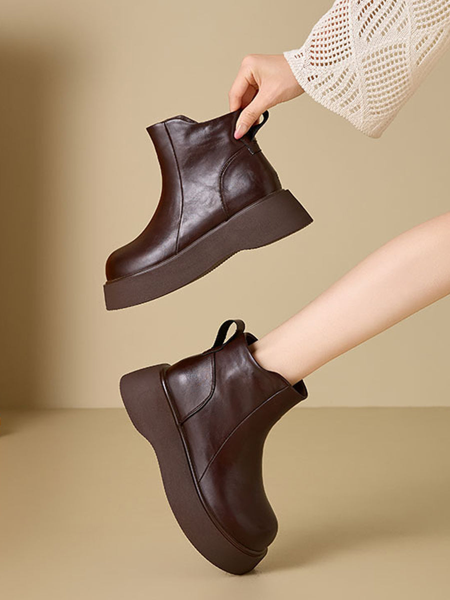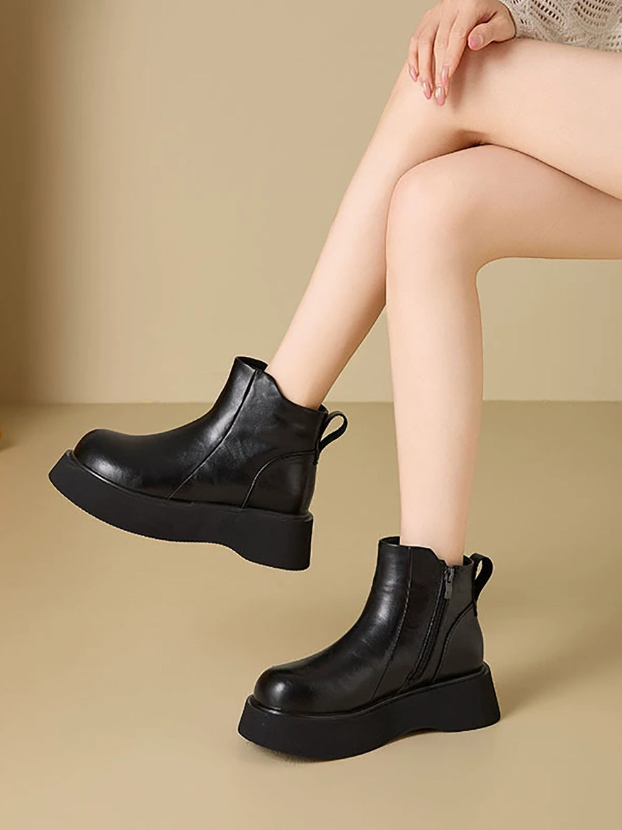 Botas de plataforma de piel de color puro para mujer, de invierno