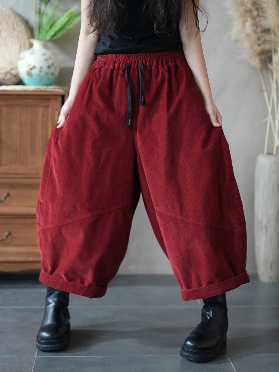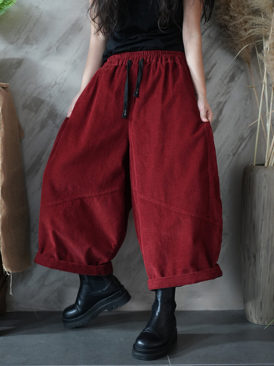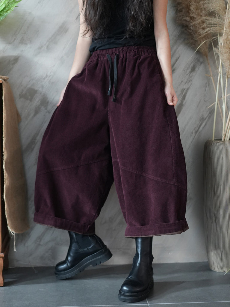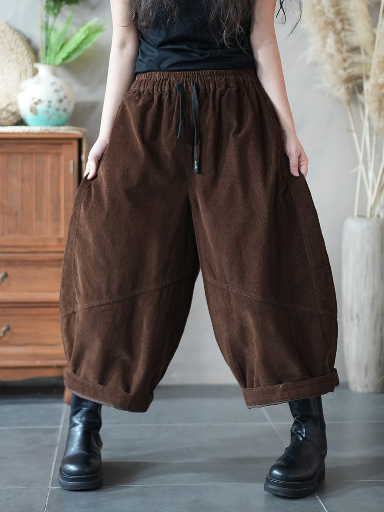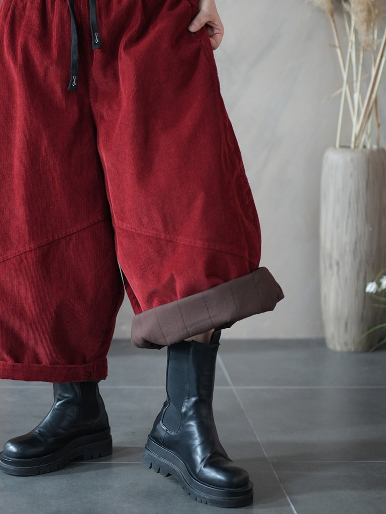 Pantalones anchos de pana de color puro retro de invierno para mujer