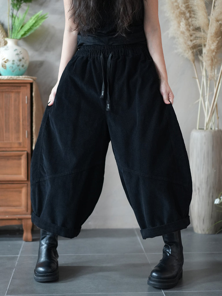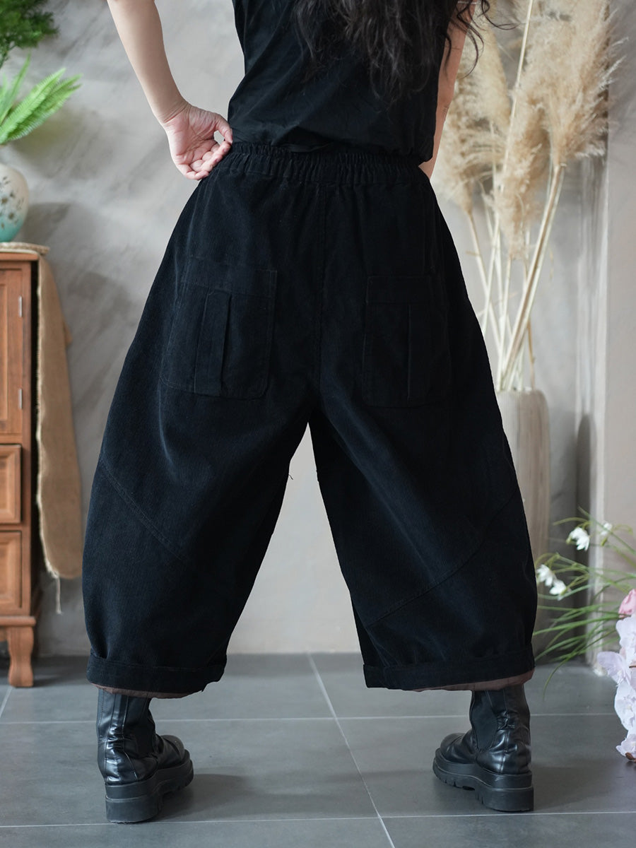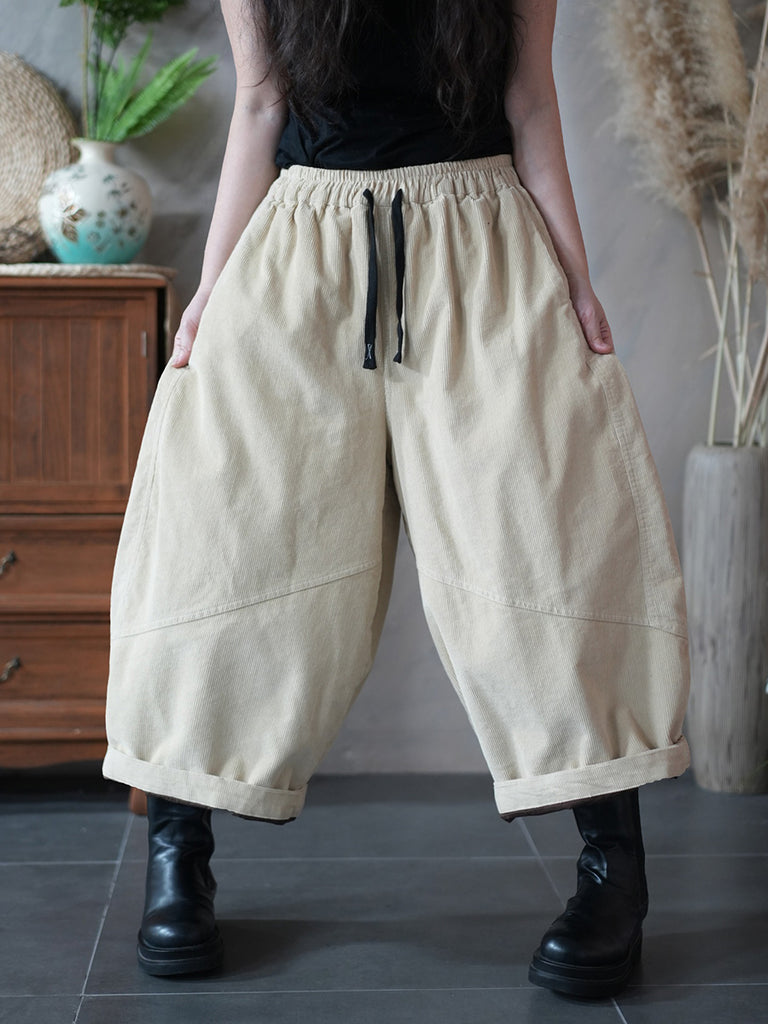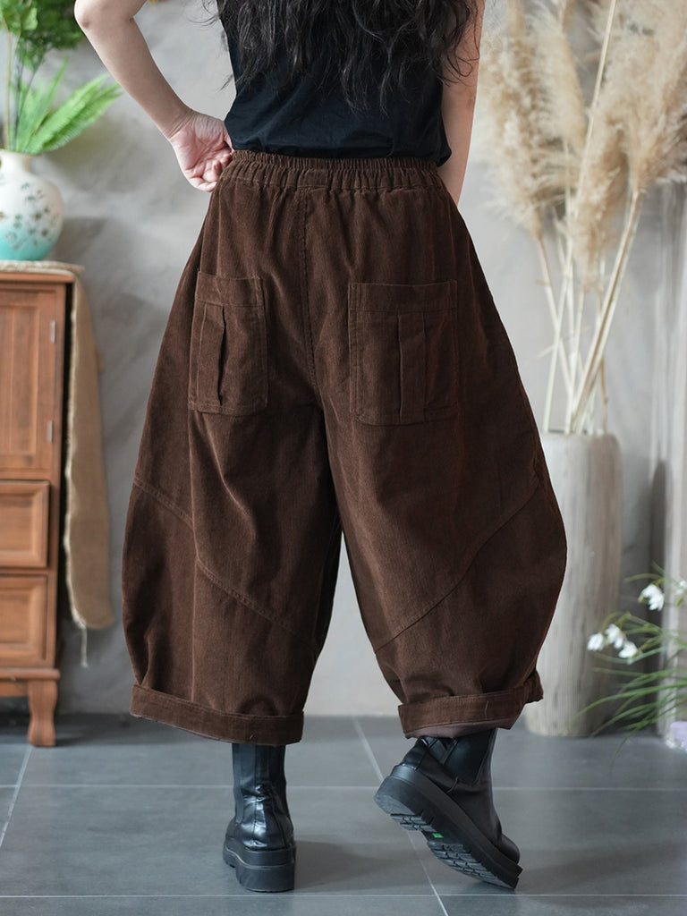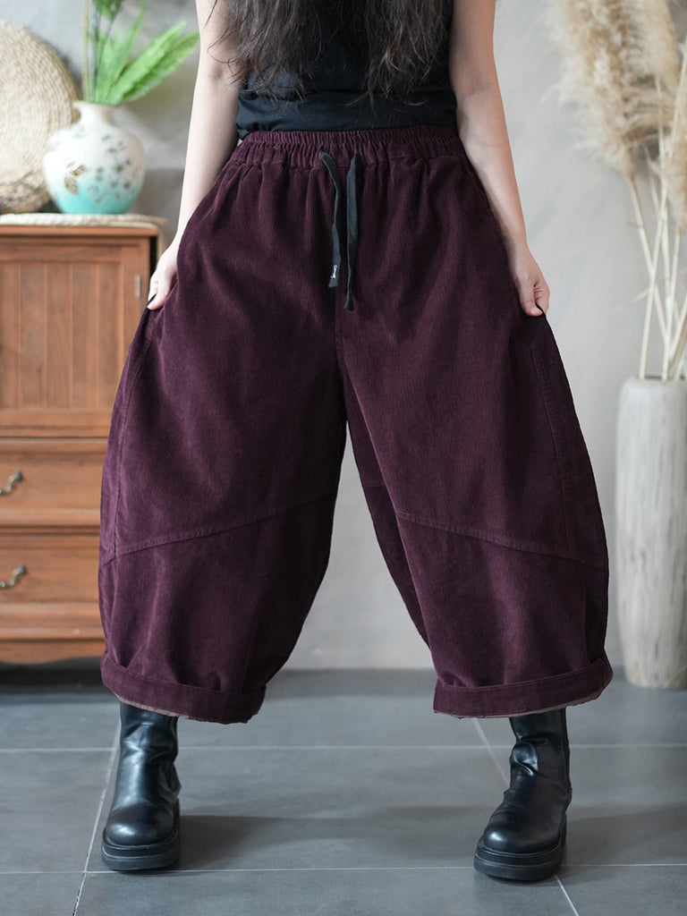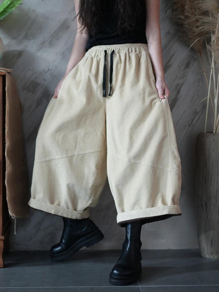 Pantalones anchos de pana de color puro retro de invierno para mujer