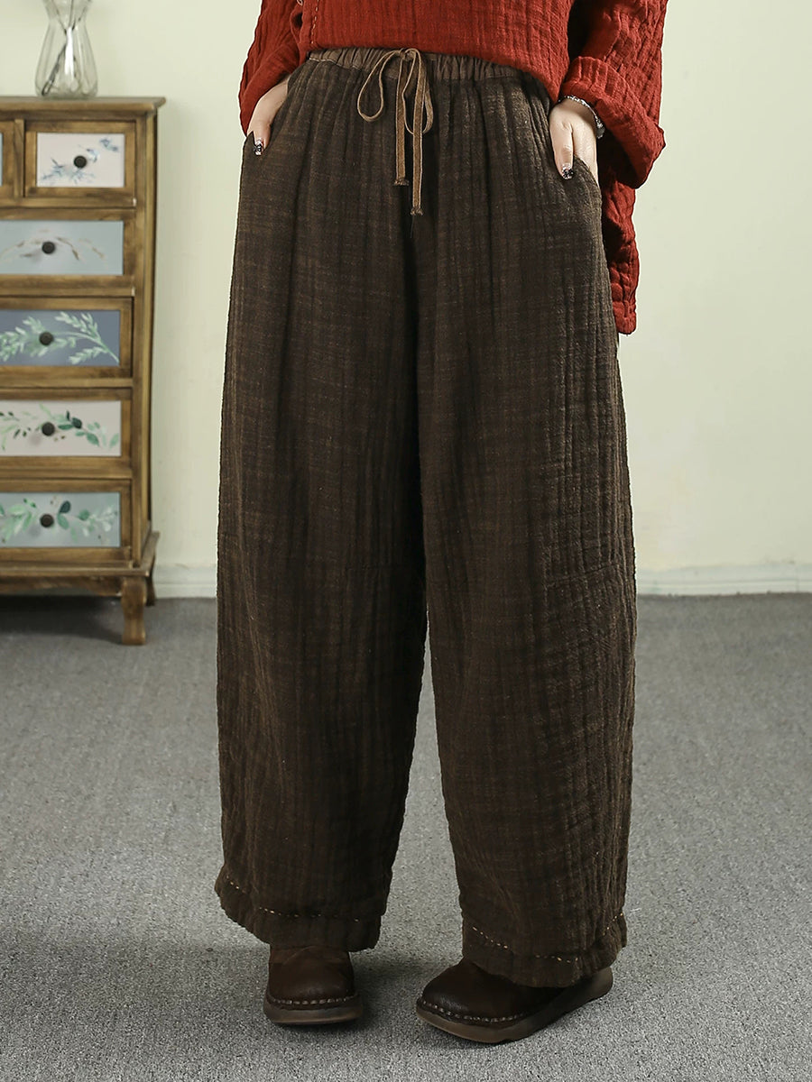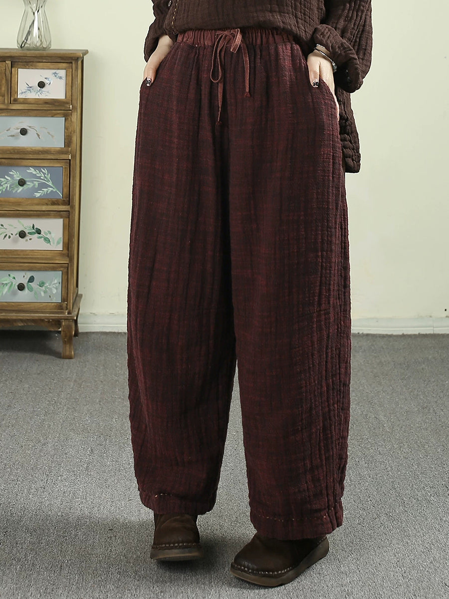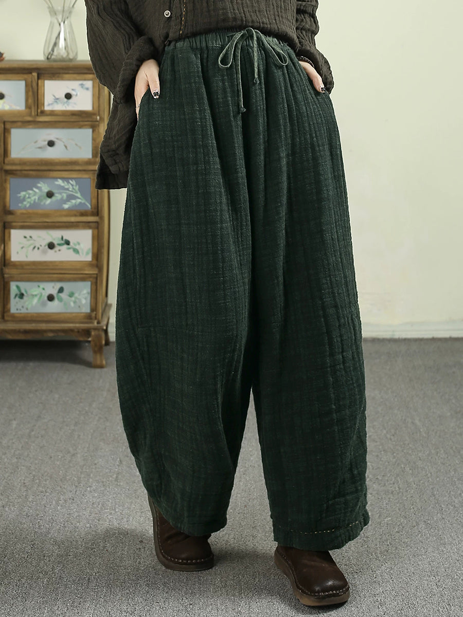 Pantalones harén acolchados de color puro retro de invierno para mujer