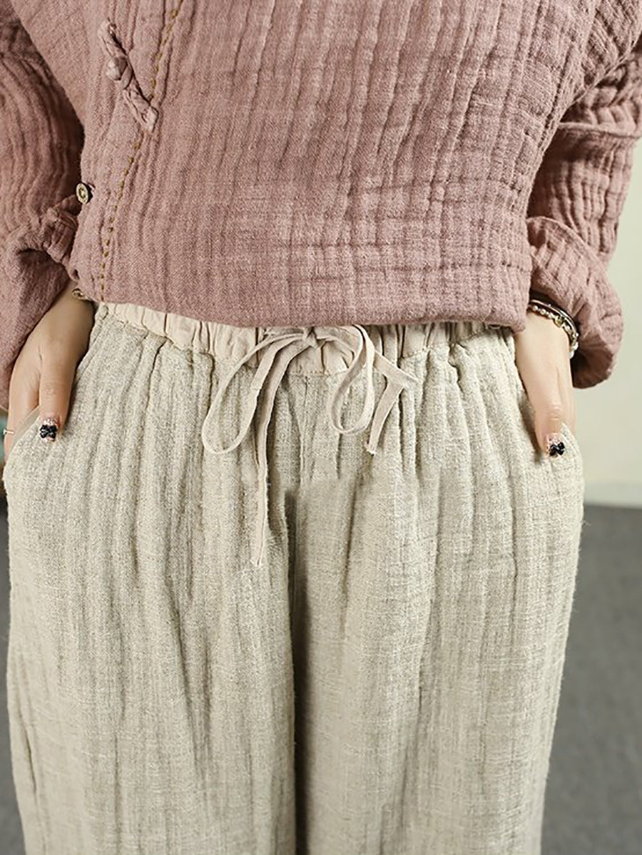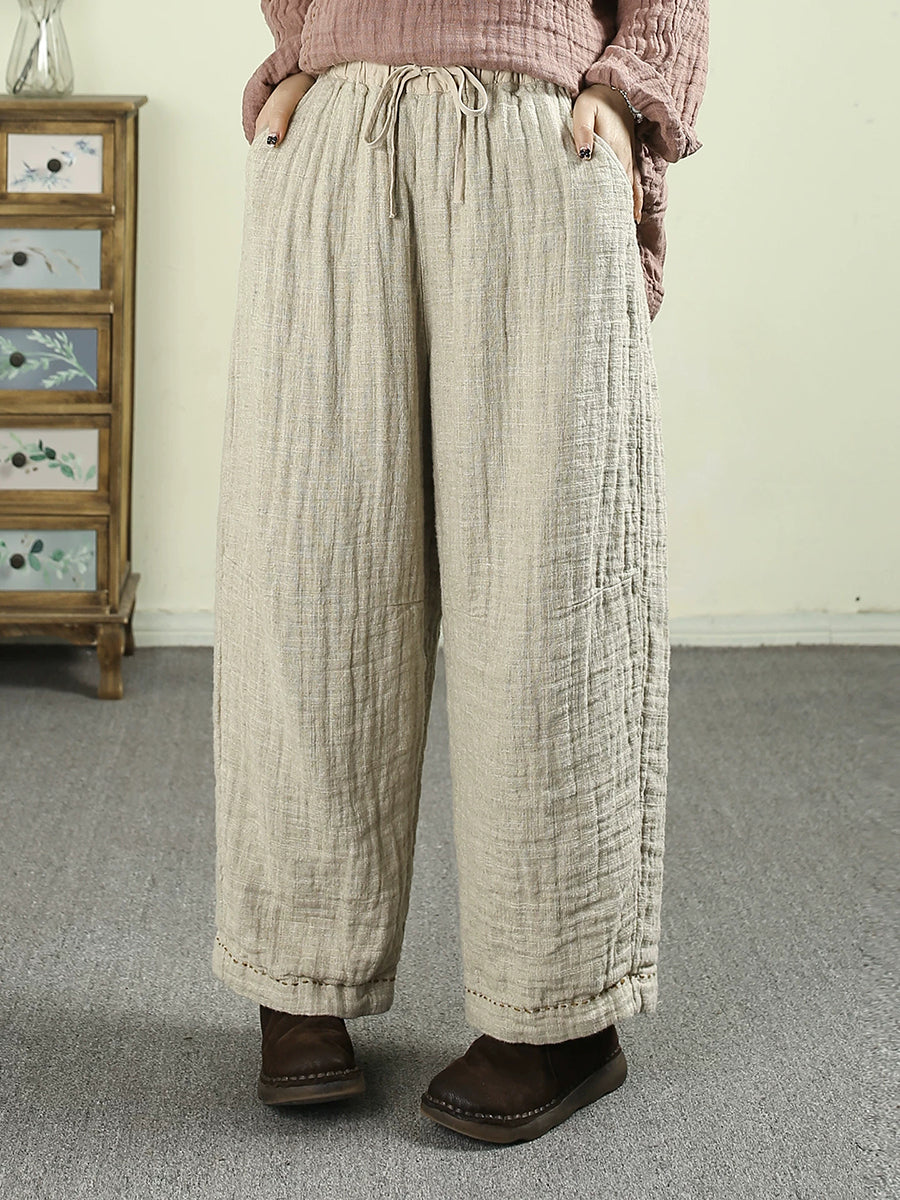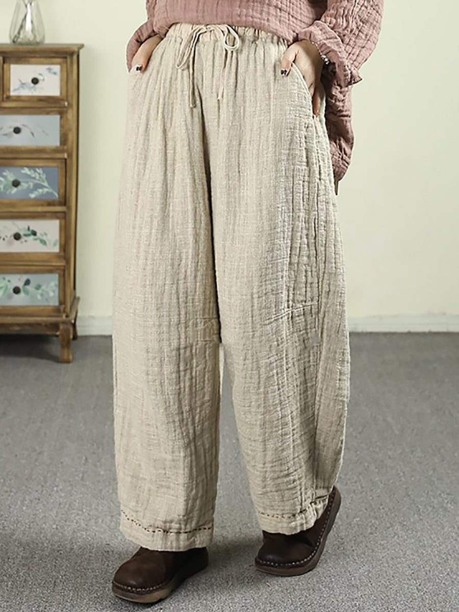 Pantalones harén acolchados de color puro retro de invierno para mujer