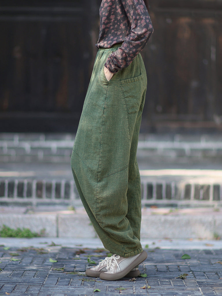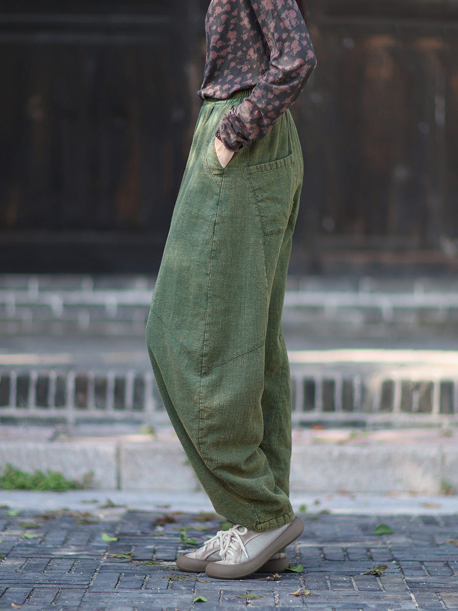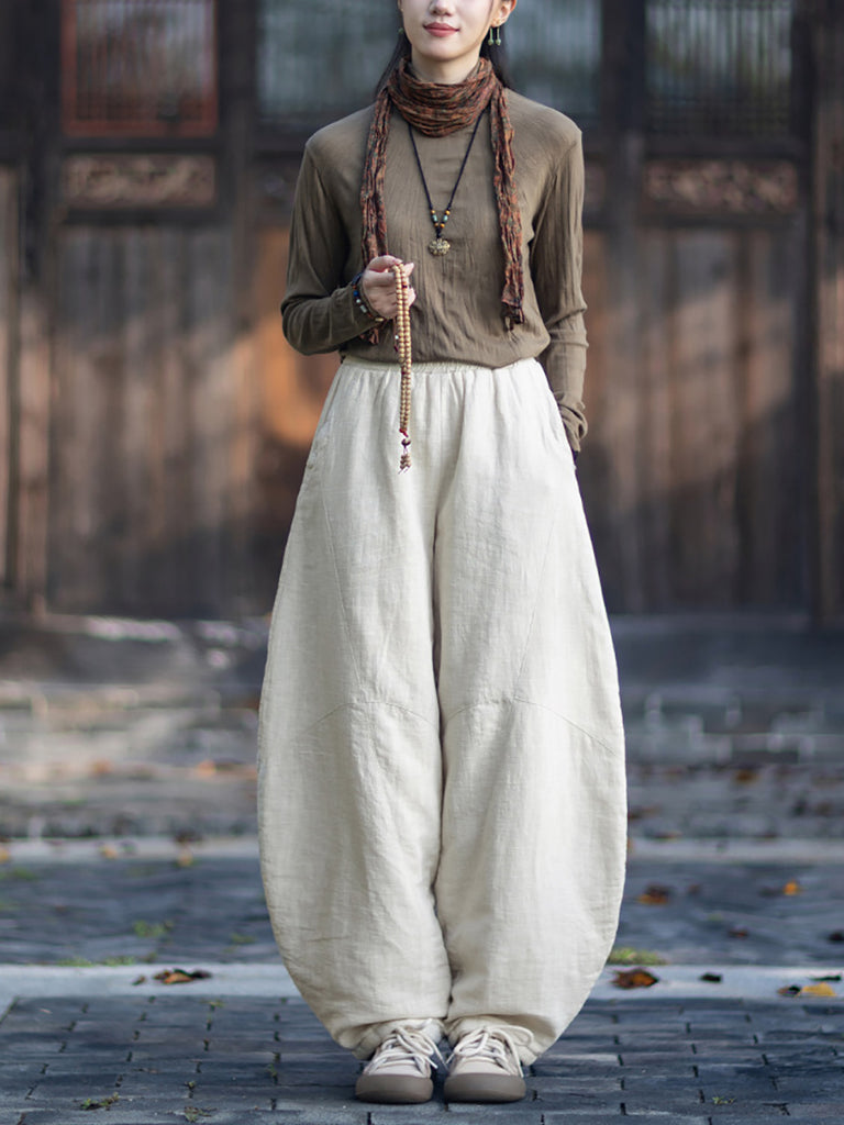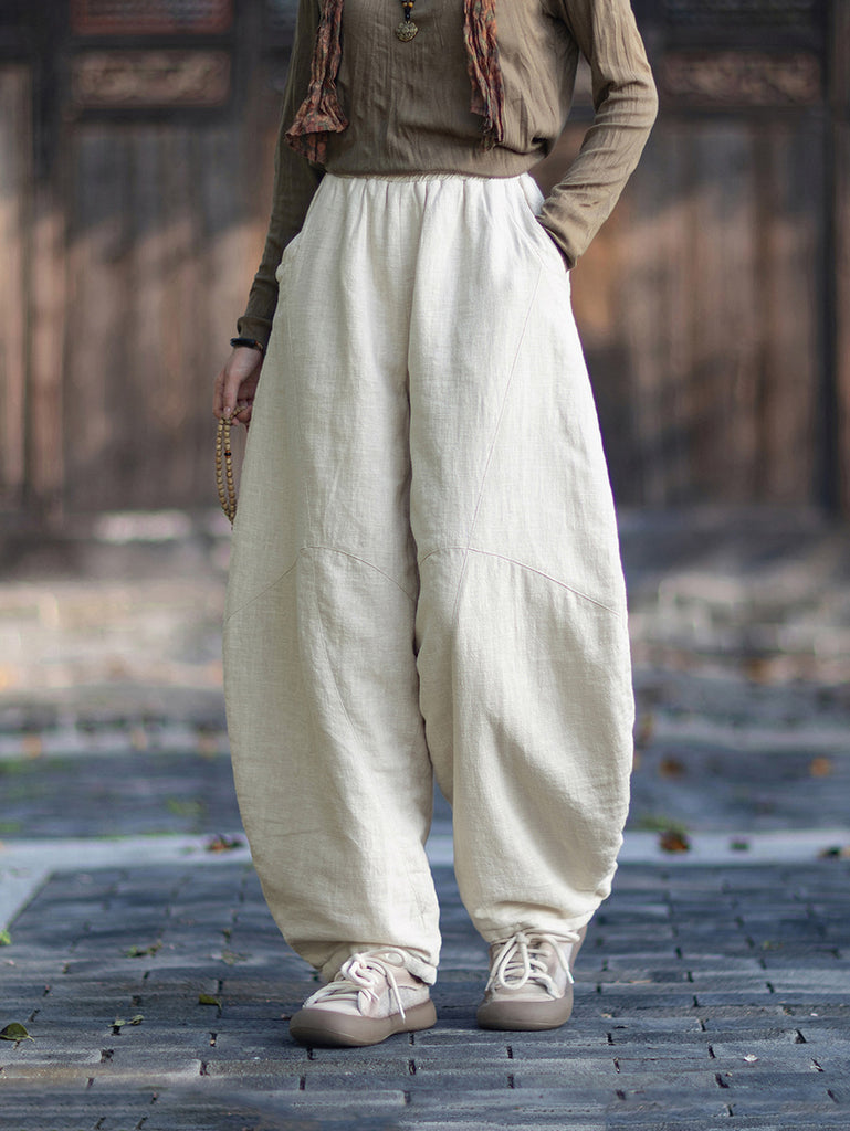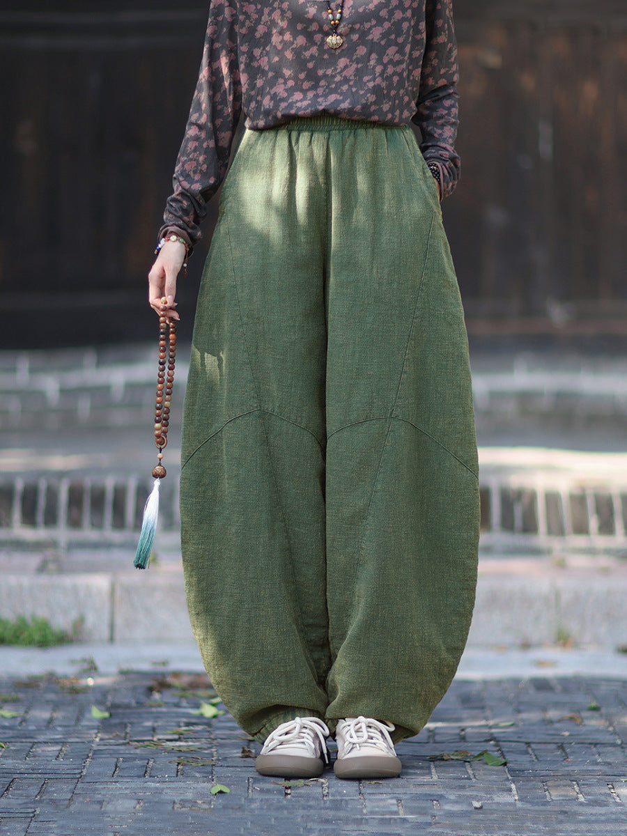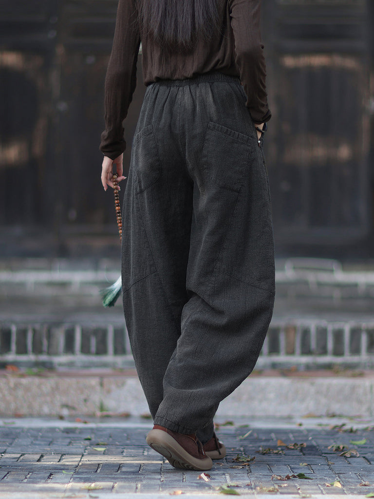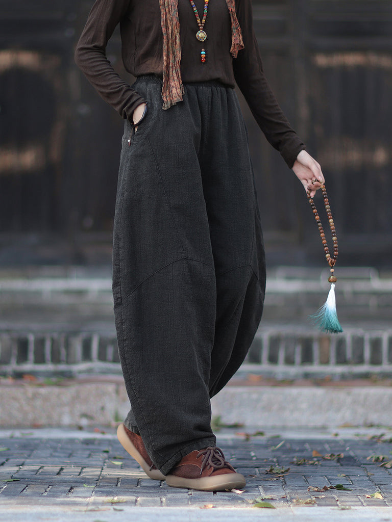 Pantalones harén acolchados de color puro retro de invierno para mujer