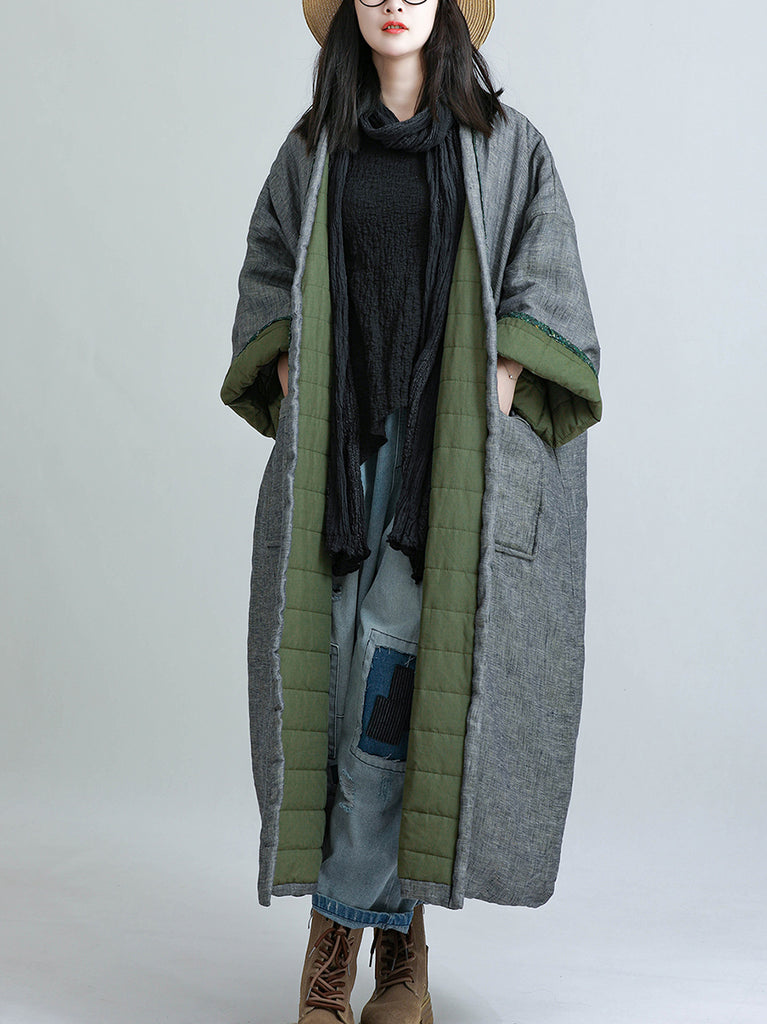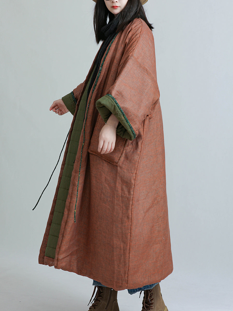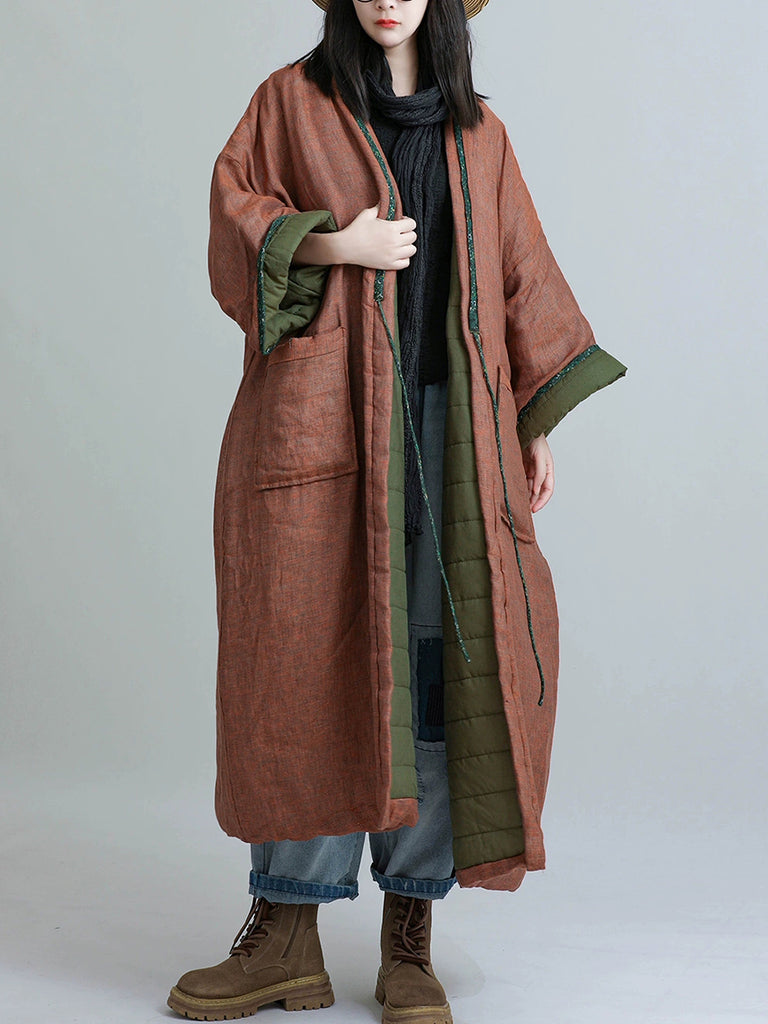 Abrigo acolchado con cuello en V de color puro retro de invierno para mujer