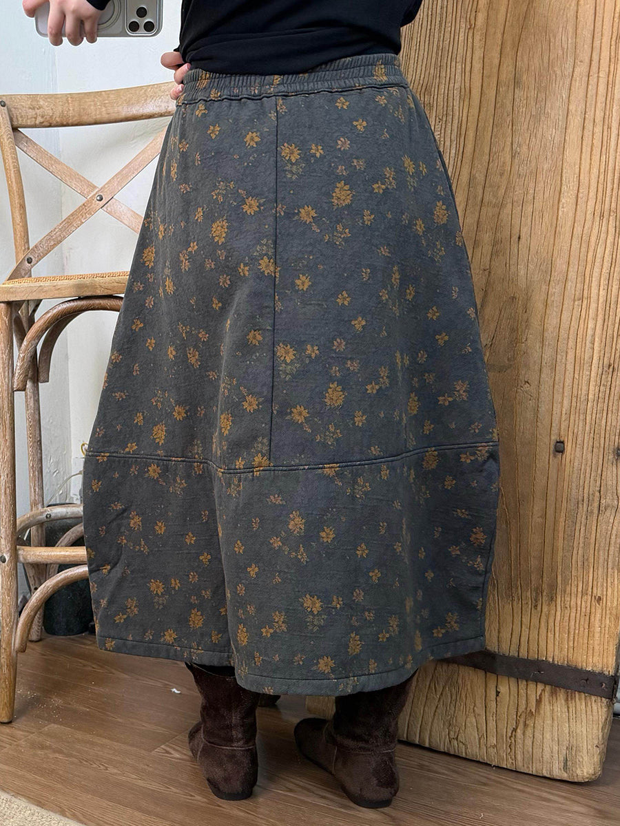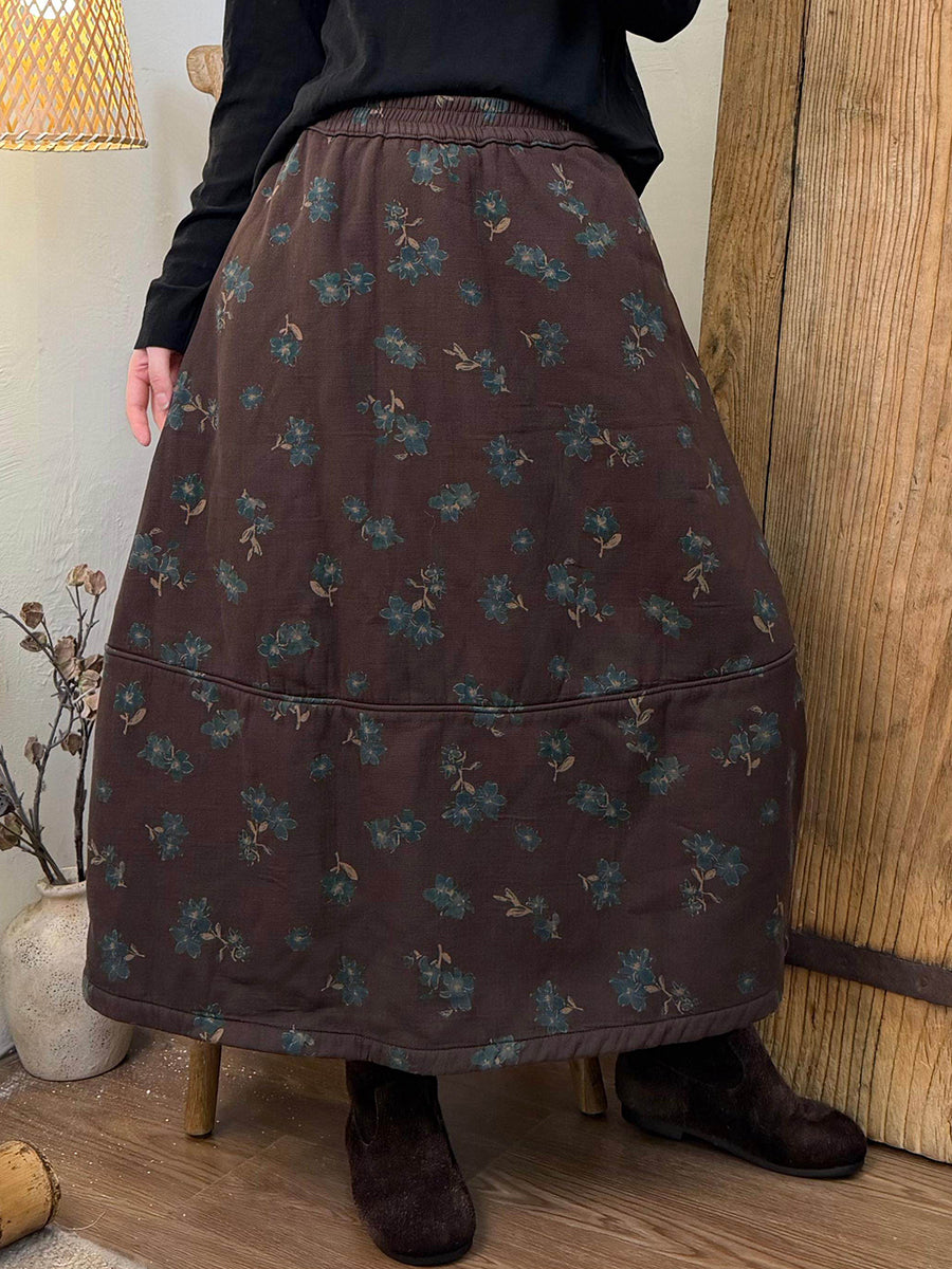 Falda de algodón con forro polar y estampado floral vintage de invierno para mujer