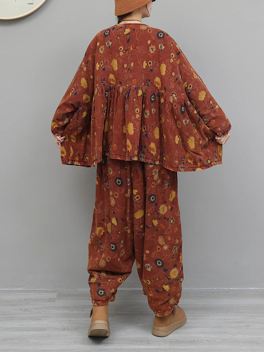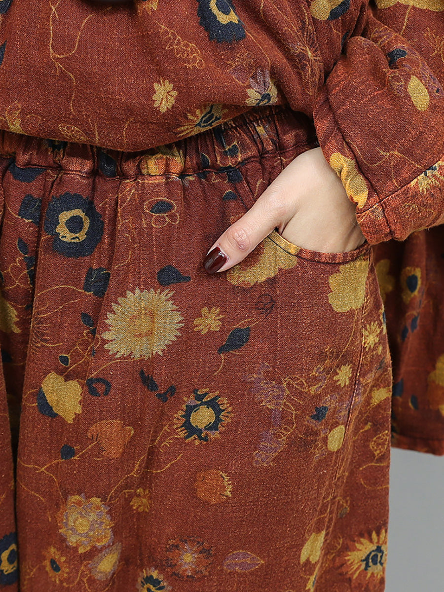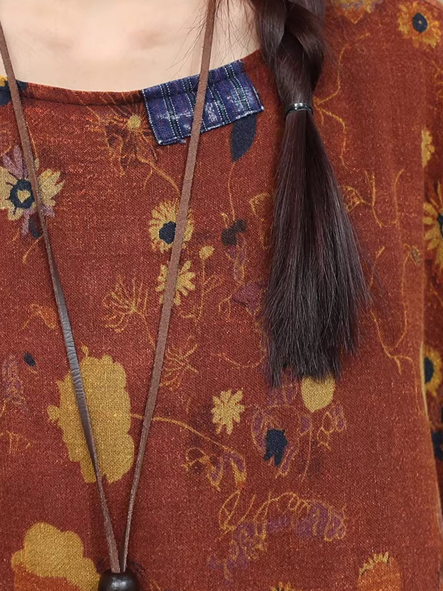 Trajes de cuello redondo con flores vintage de invierno para mujer