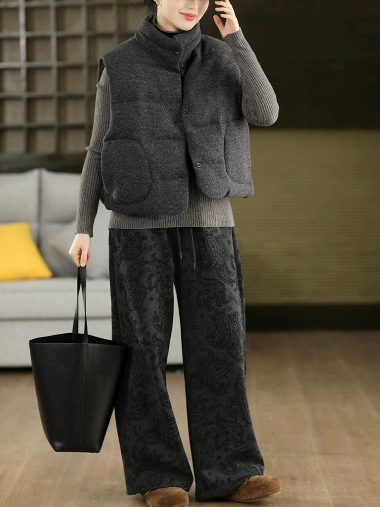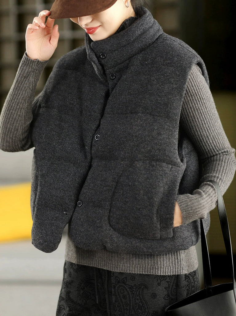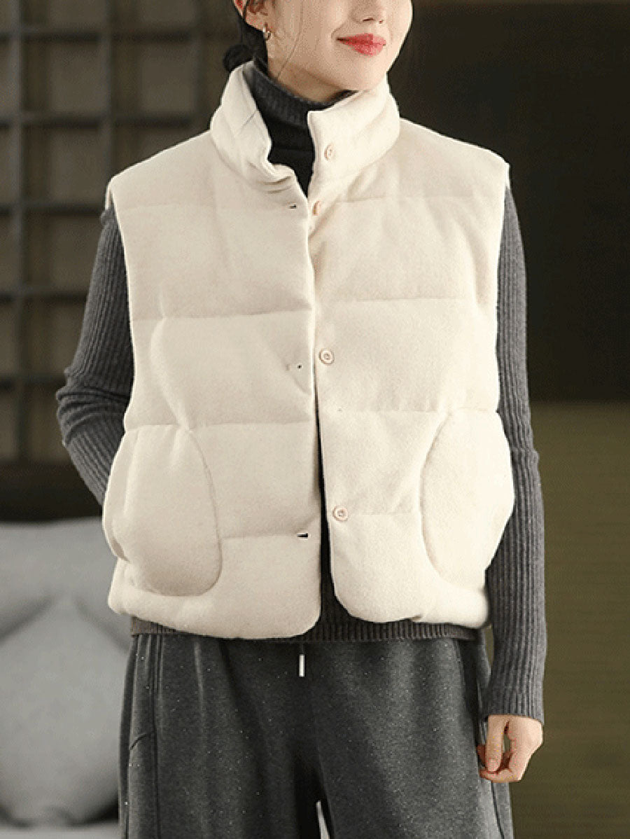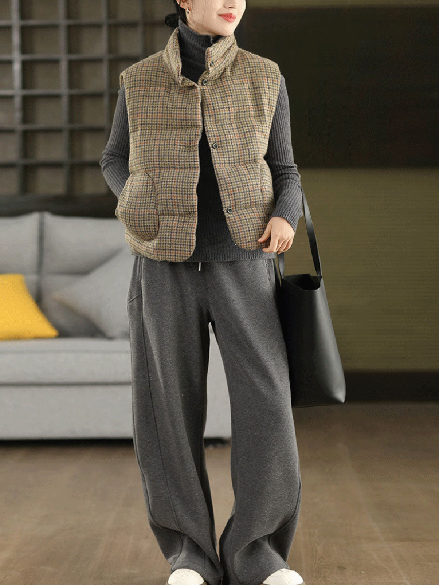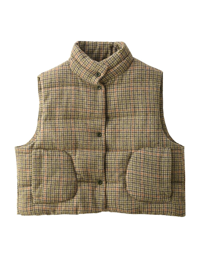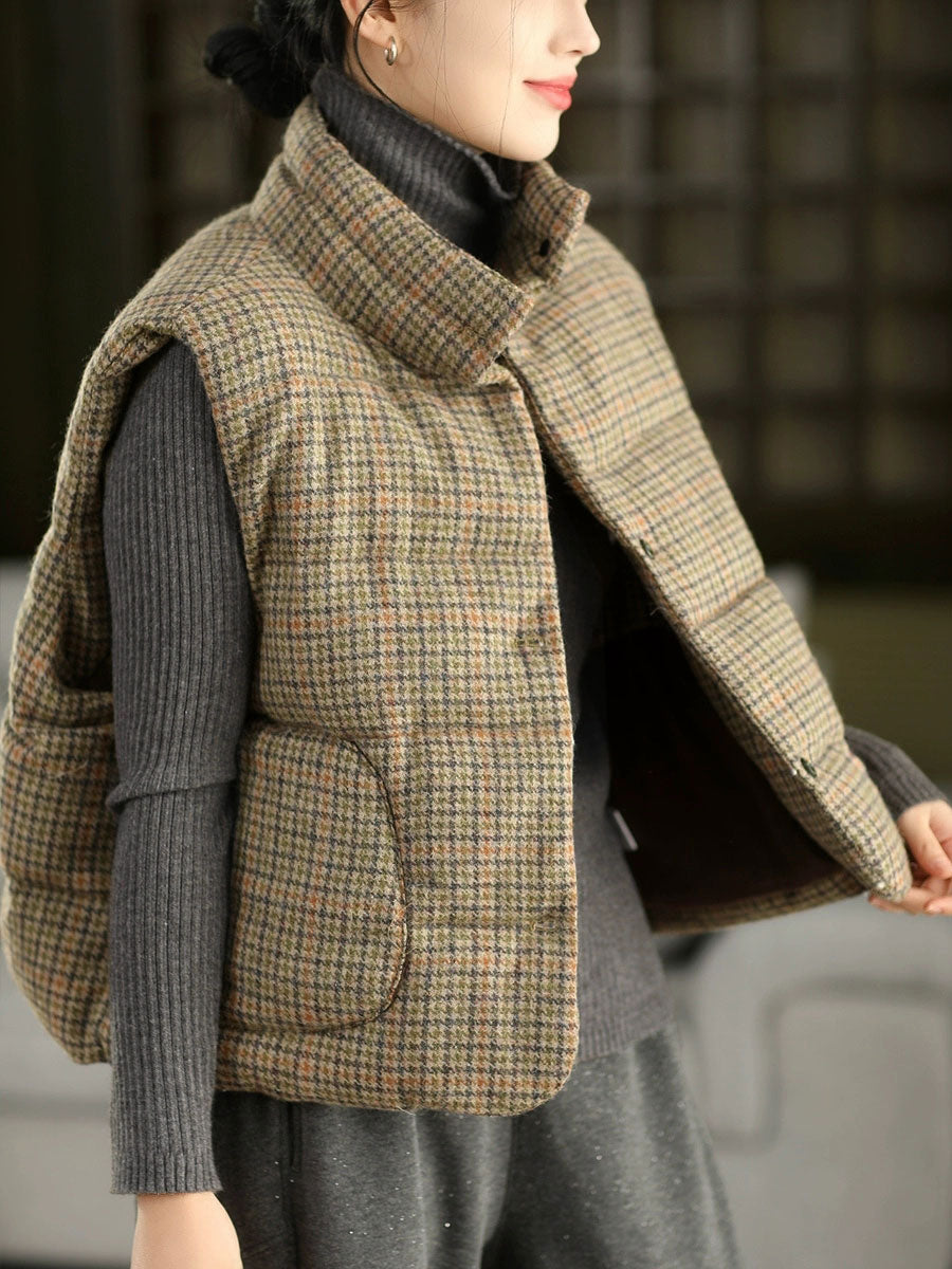 Chaleco vintage de invierno a cuadros con cuello alto para mujer