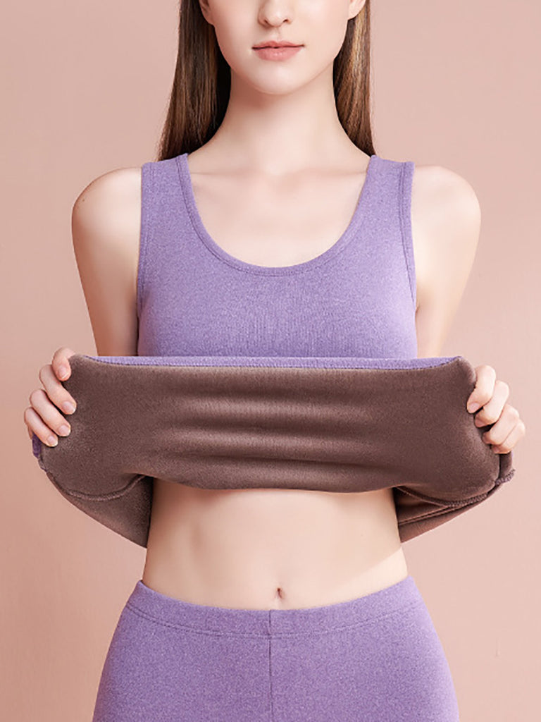 Chaleco de invierno cálido con forro polar de color puro para mujer